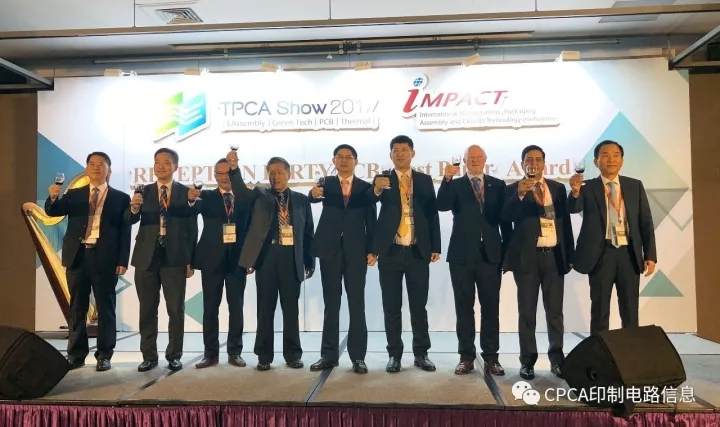 当天展会结束后,全体团员一起参加TPCA SHOW 2017欢迎晚宴。TPCA吴永辉理事长致赠纪念品给WECC各成员,CPCA副理事长武守坤上台接受礼品并祝酒。