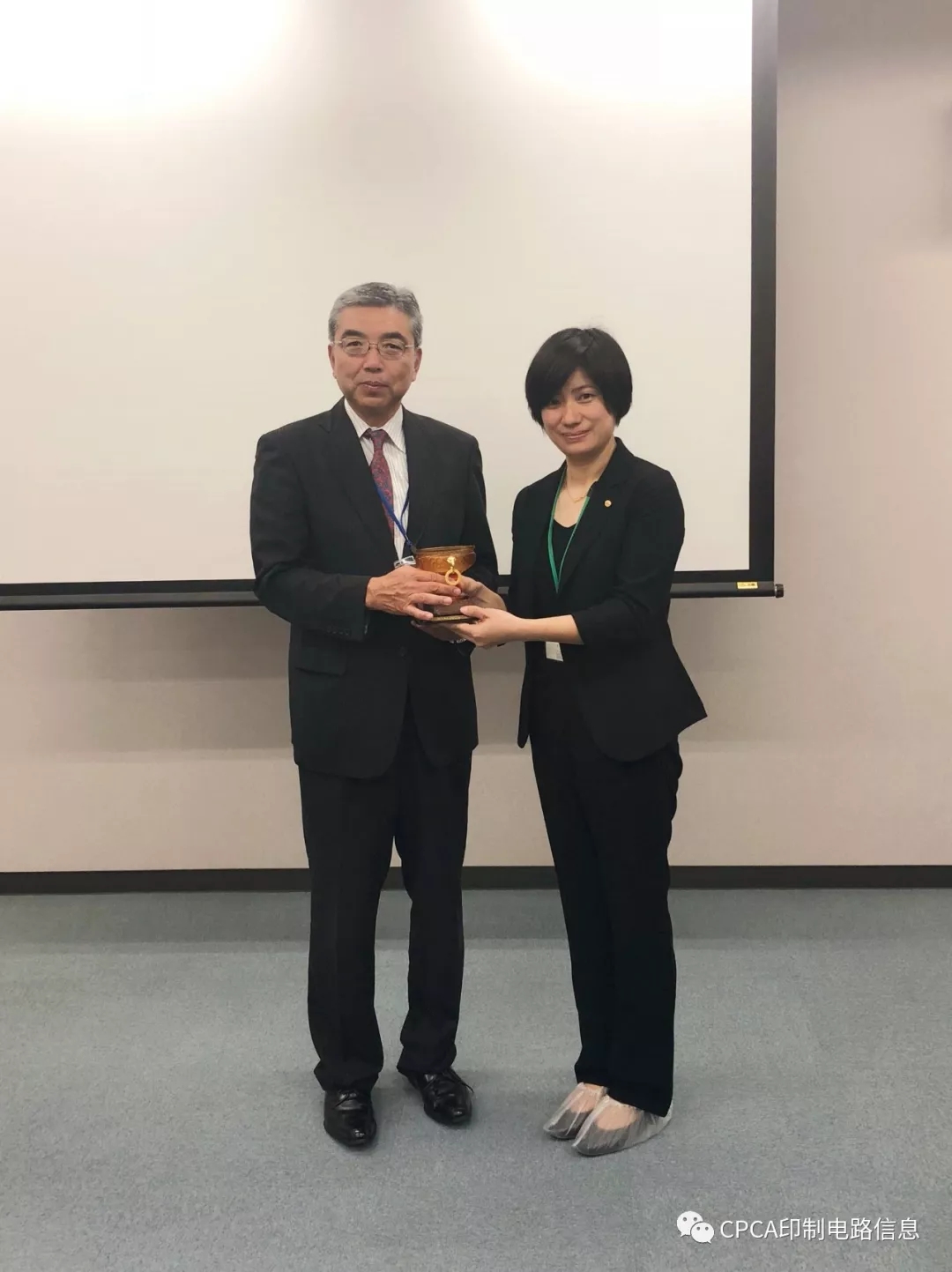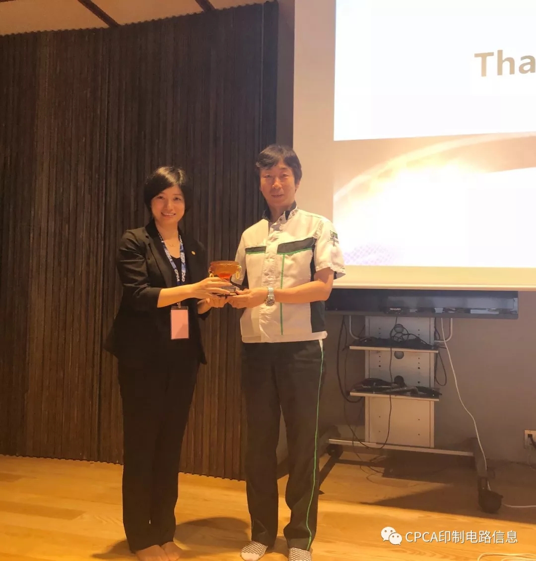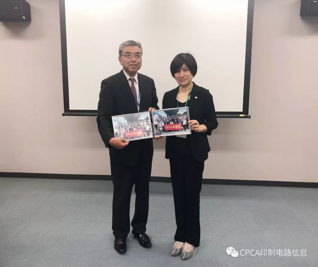 欢迎会上太阳油墨制造的荒田工场长与CPCA洪芳副秘书长分别致辞。洪芳副秘书长讲道,太阳油墨的市场占有率份额巨大,是电子电路行业油墨产业的标杆企业,而中国市场也不容小觑,希望借此次互动、学习和交流能共同推进两国电子电路行业发展,她还代表CPCA向荒田工场长赠送礼品。