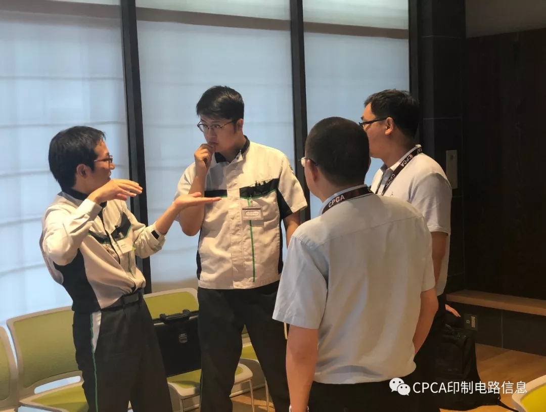 随后团员们在太阳油墨工作人员的带领下分组参观了其防焊油墨工艺生产流水线。液状防焊油墨在严格控制管理湿度和温度的环境中生产,干膜具有适合各种产品的膜厚和宽度的特点,则需要严格的工程管理。参观结束后,团员们与公司员工展开了热烈的技术讨论。