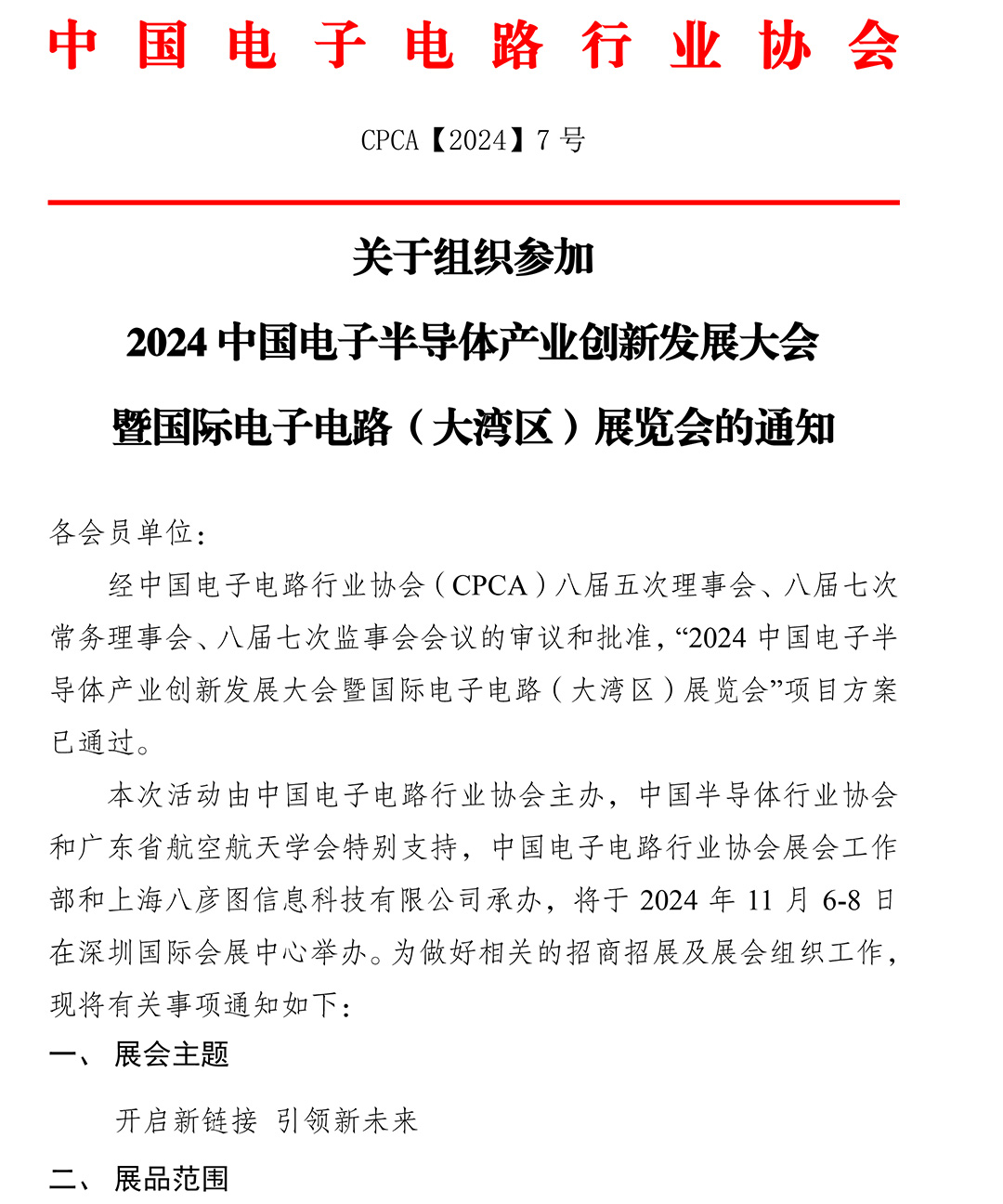 2024中国电子半导体产业创新发展大会暨国际电子电路(大湾区)展览会