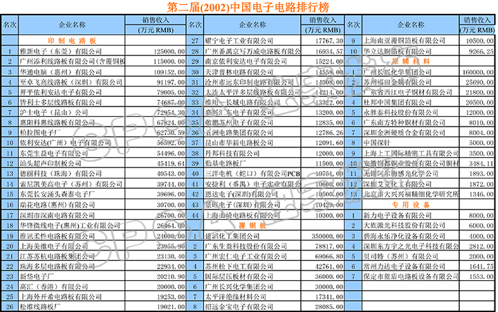 第二届(2002)中国电子电路排行榜