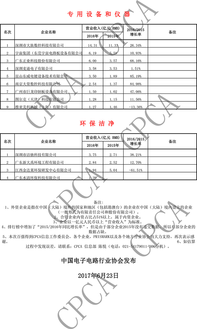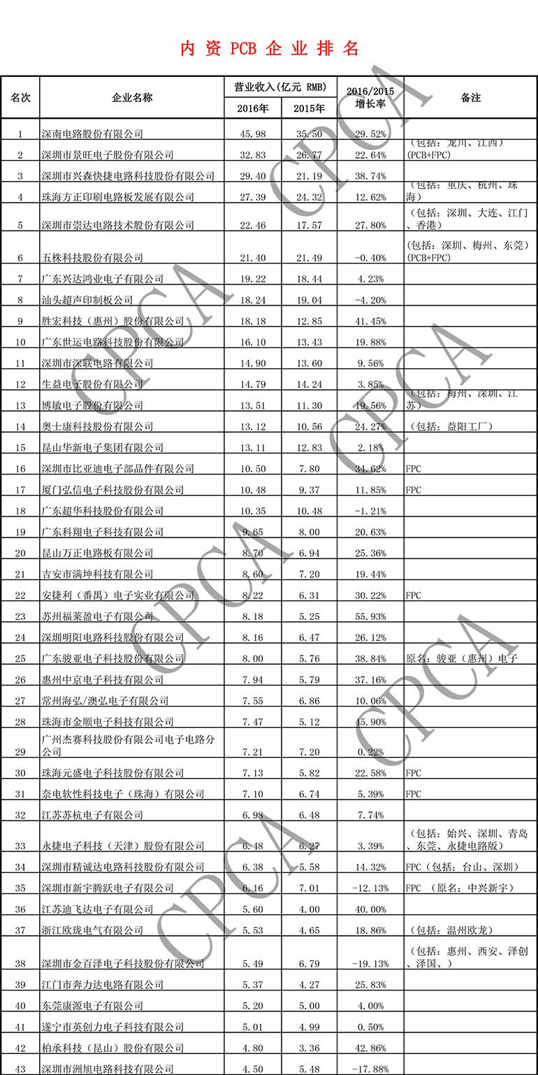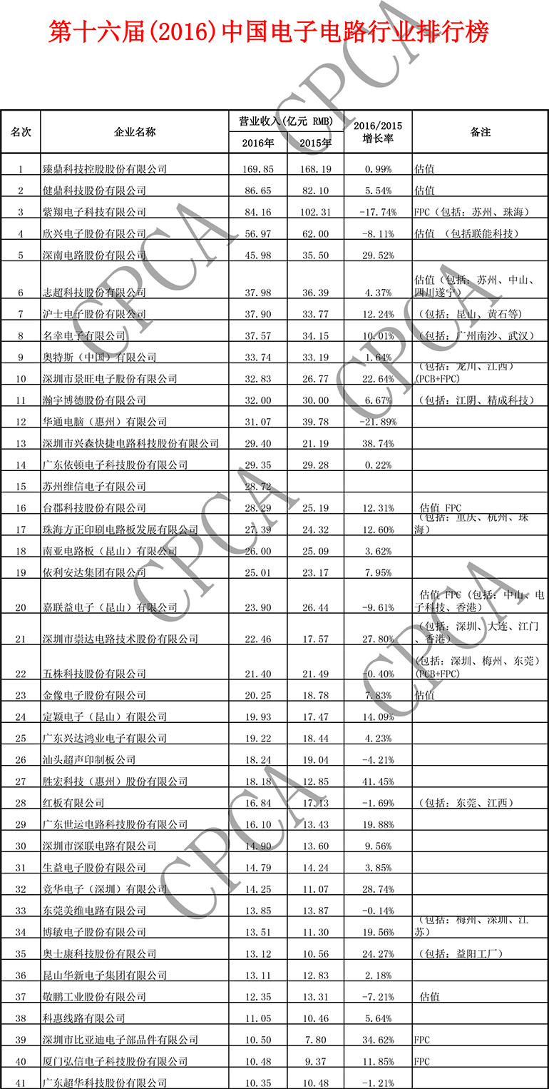 第十六届(2016)中国电子电路行业排行榜