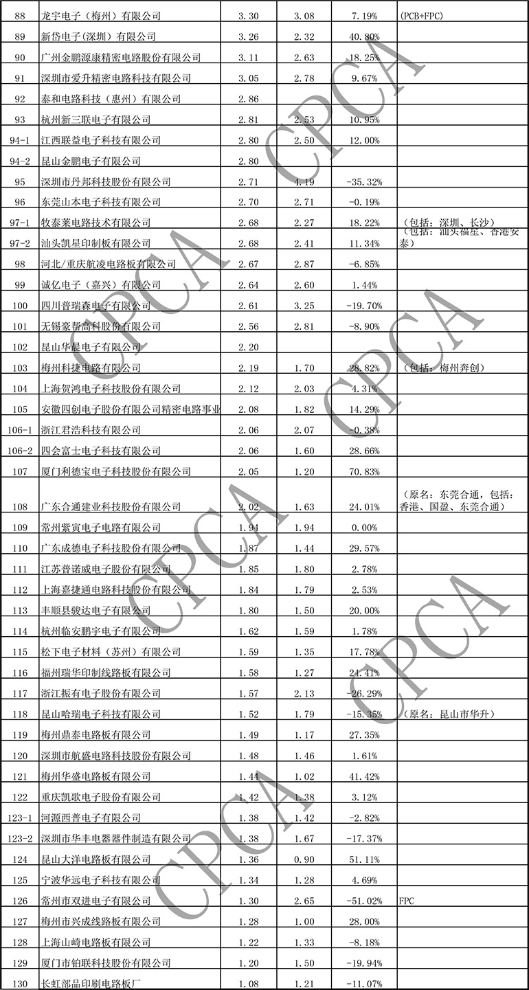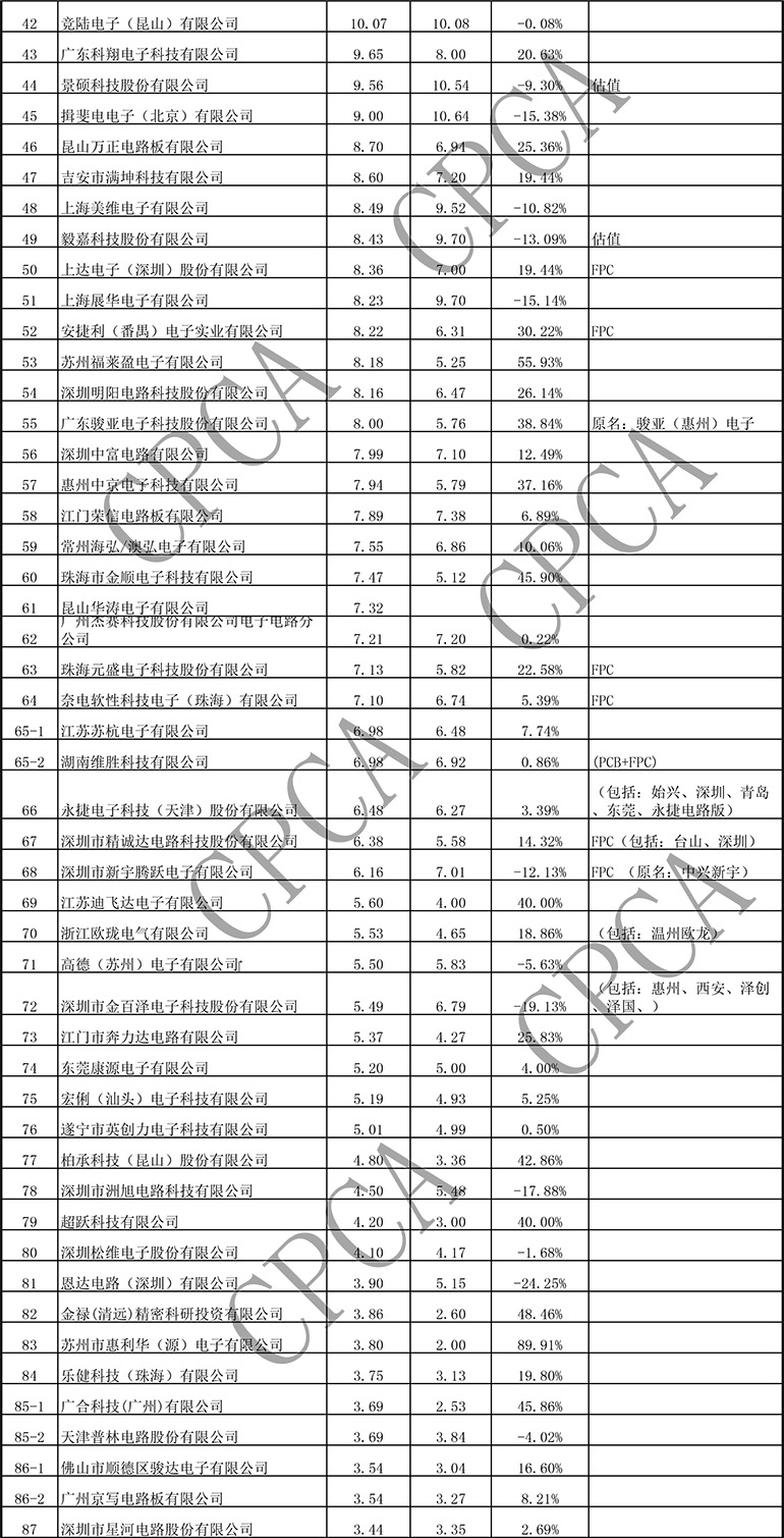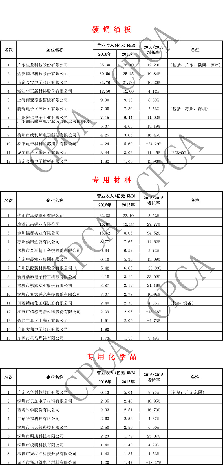 第十六届(2016)中国电子电路行业排行榜