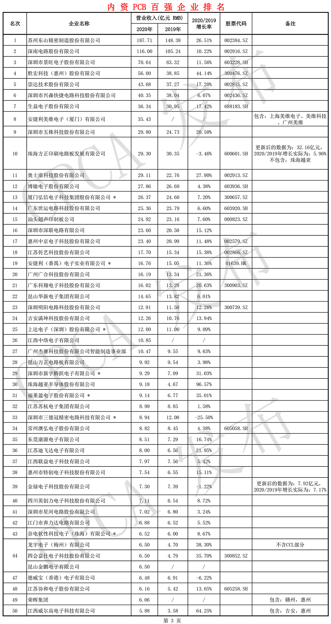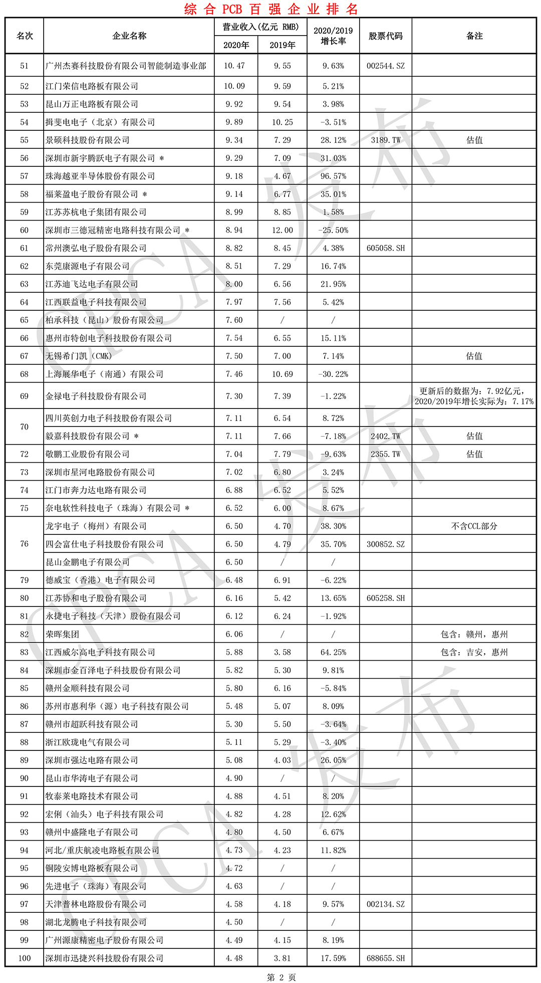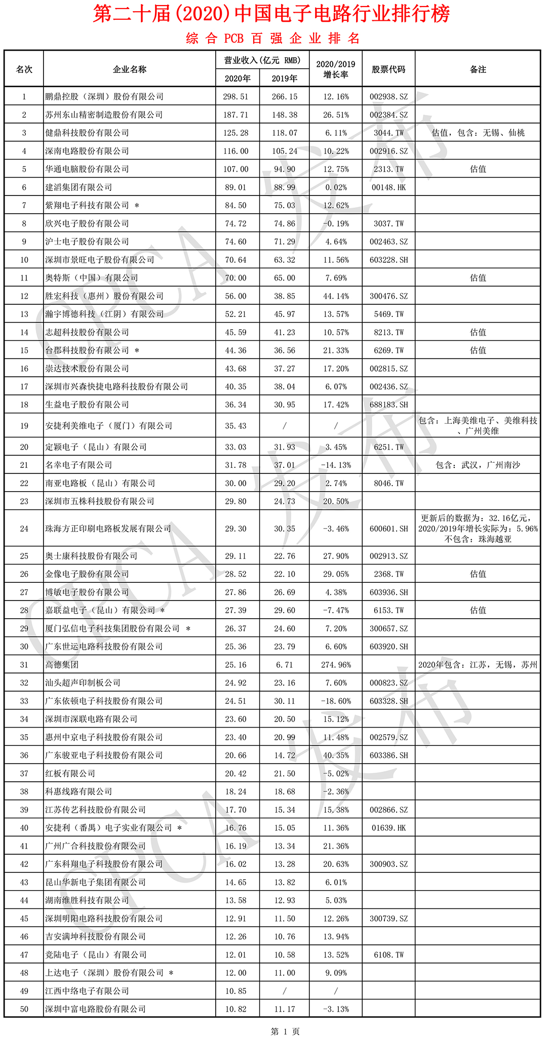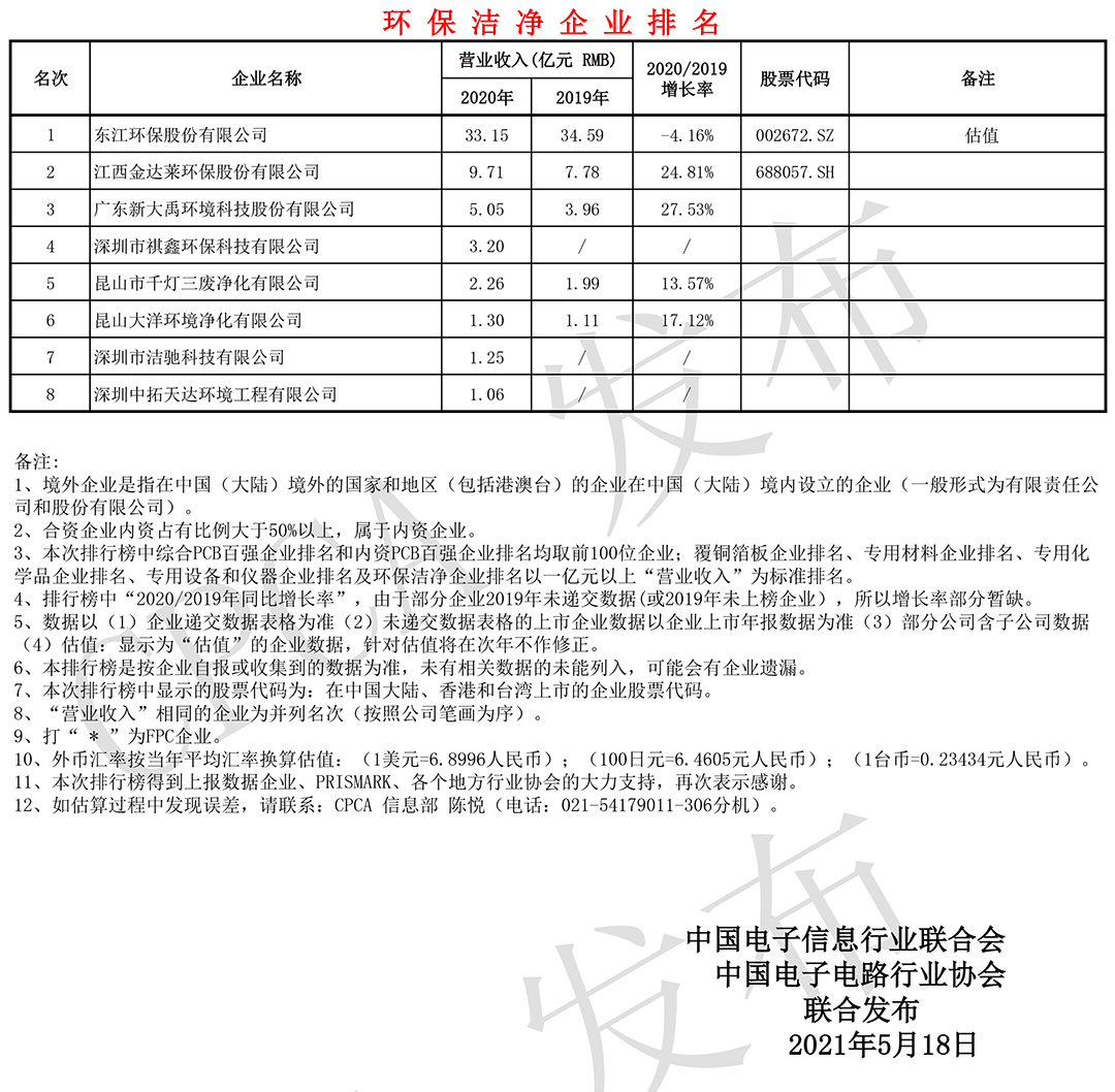 第二十届(2020)中国电子电路行业排行榜