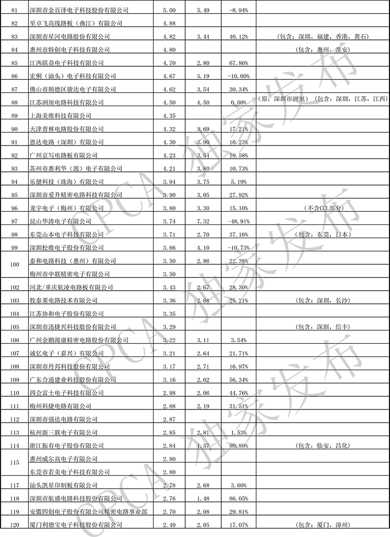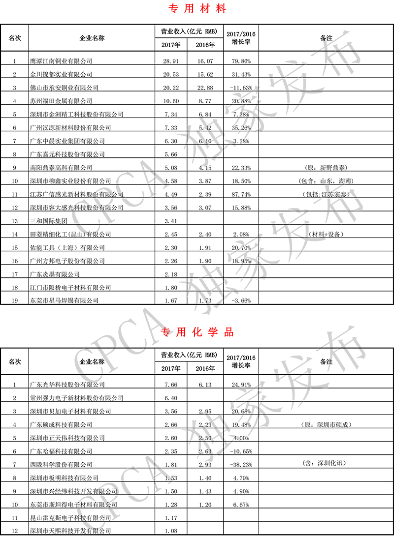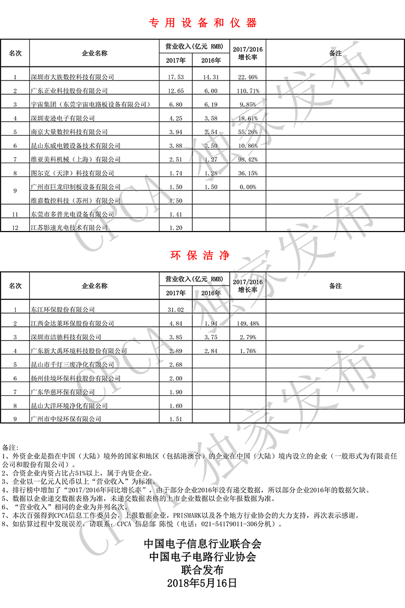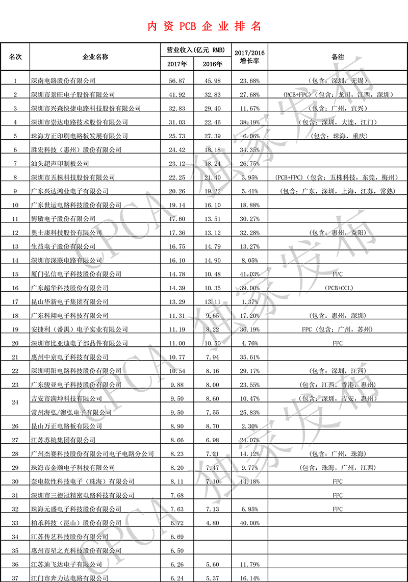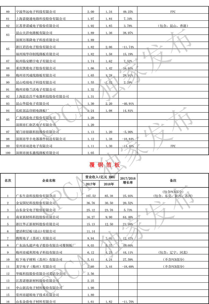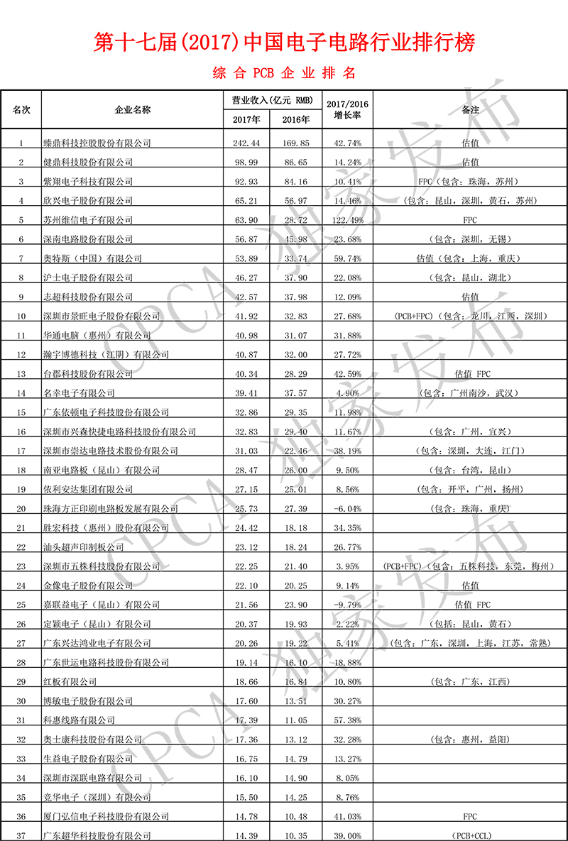 第十七届(2017)中国电子电路行业排行榜