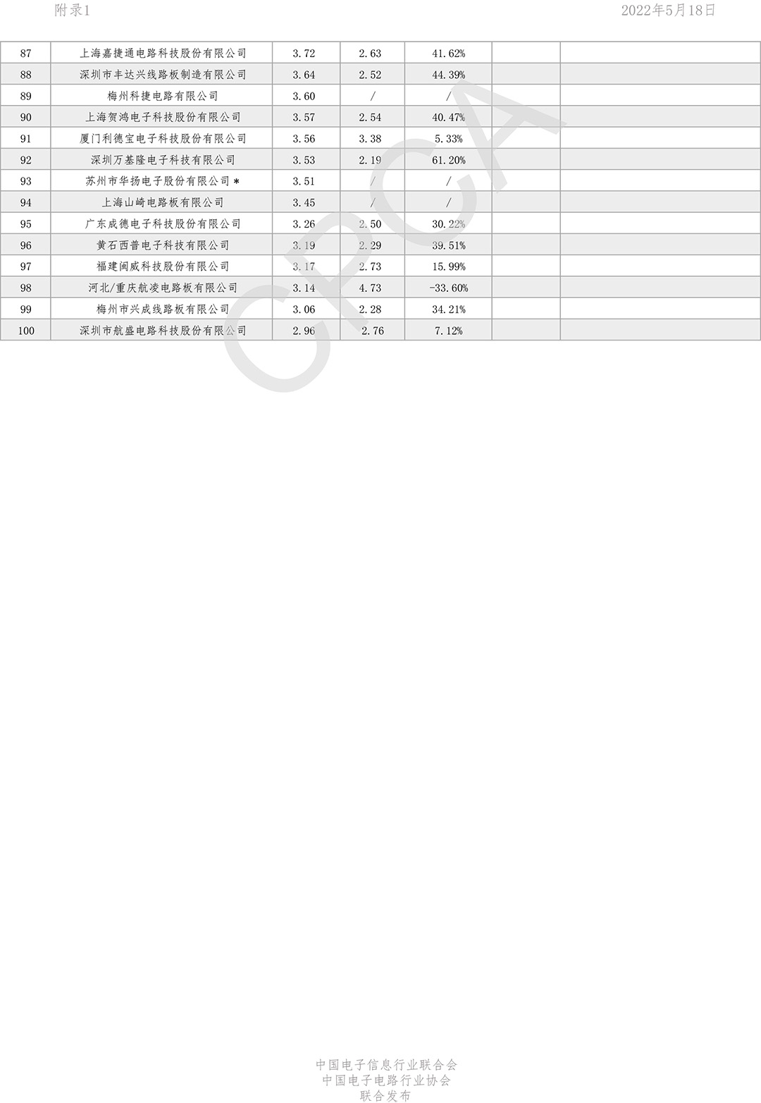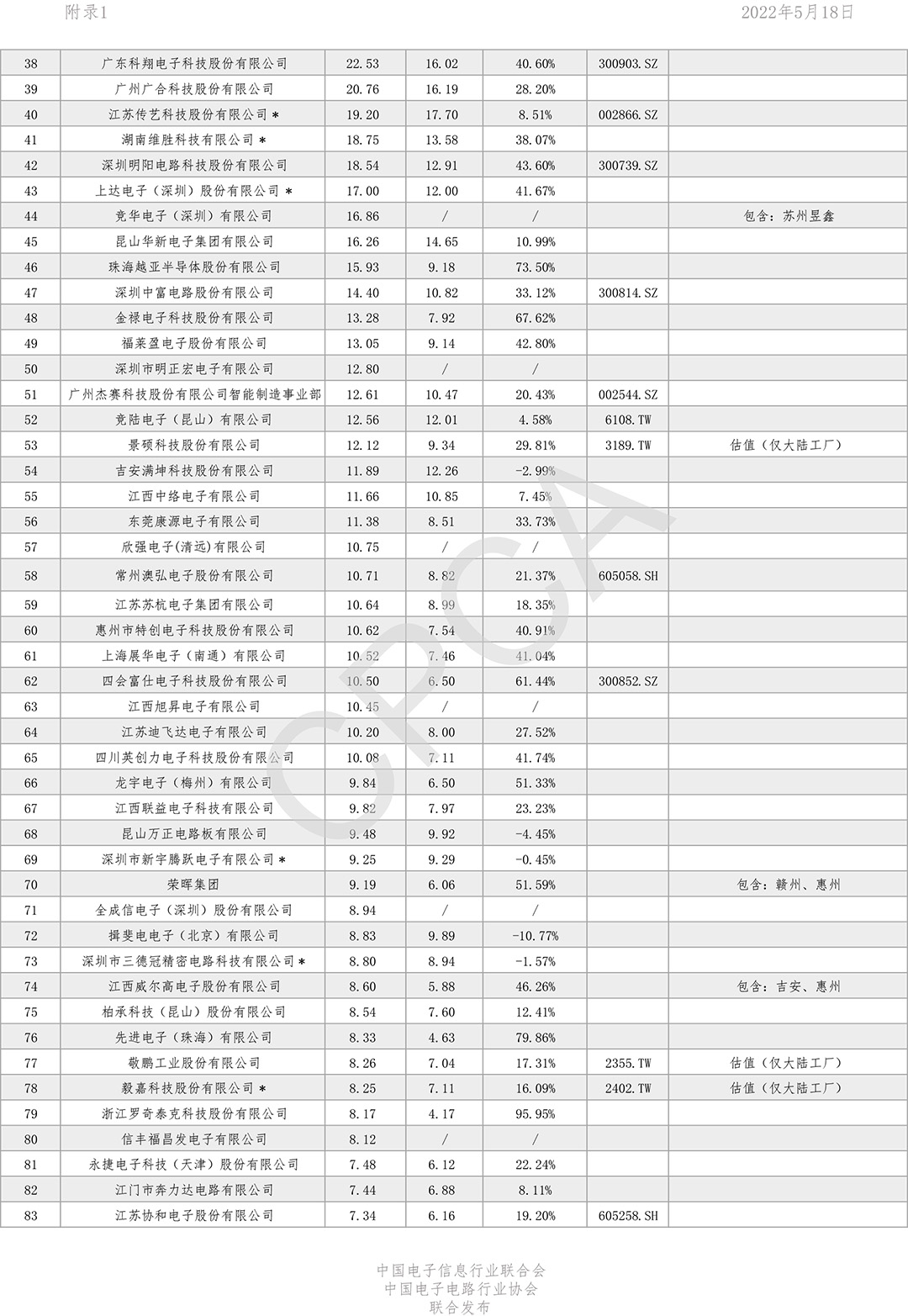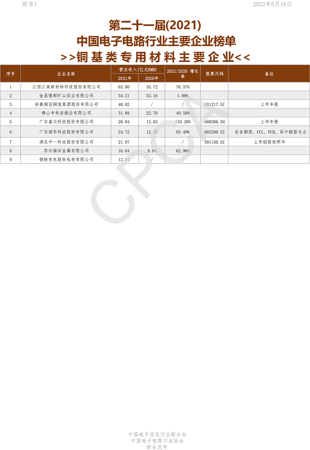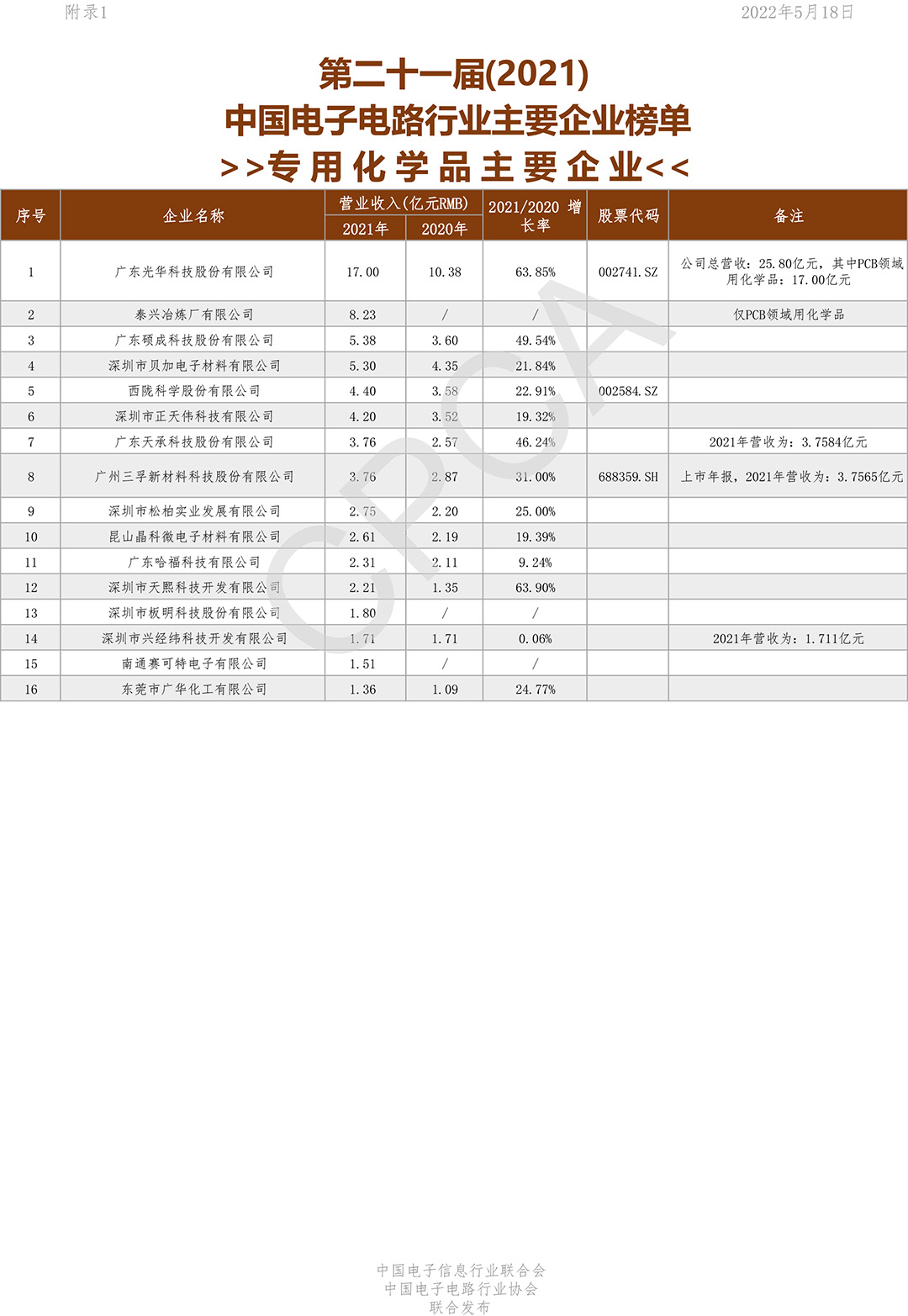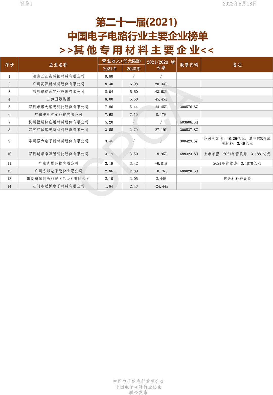 第二十一届(2021)中国电子电路行业主要企业榜单