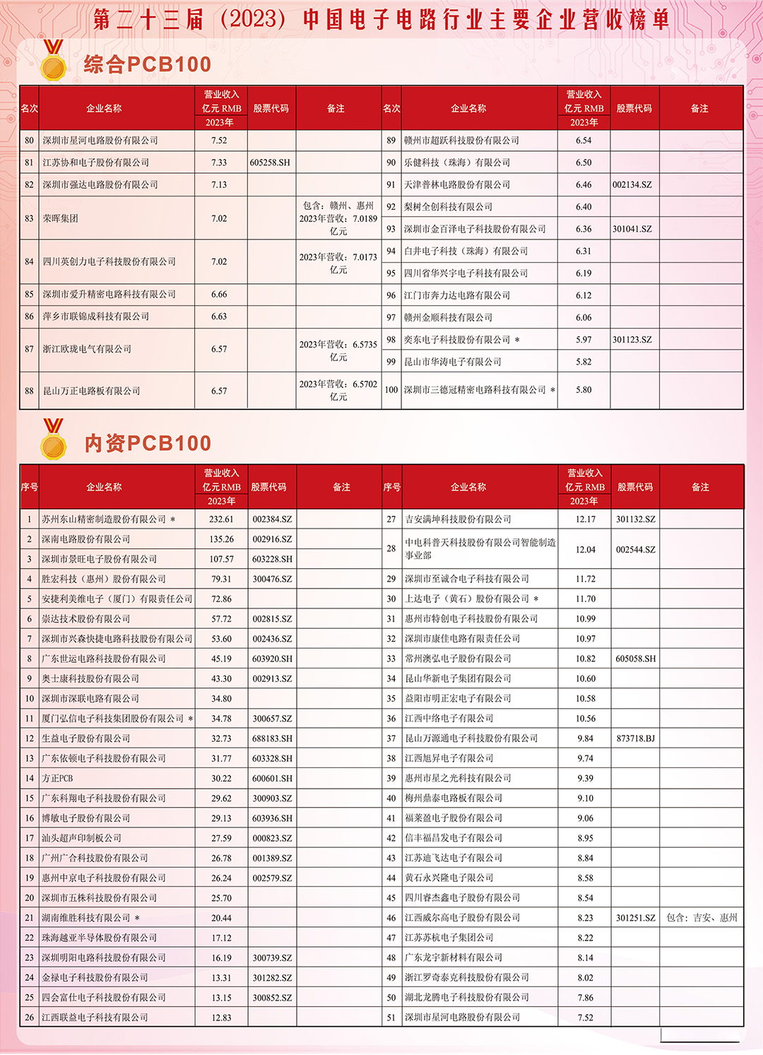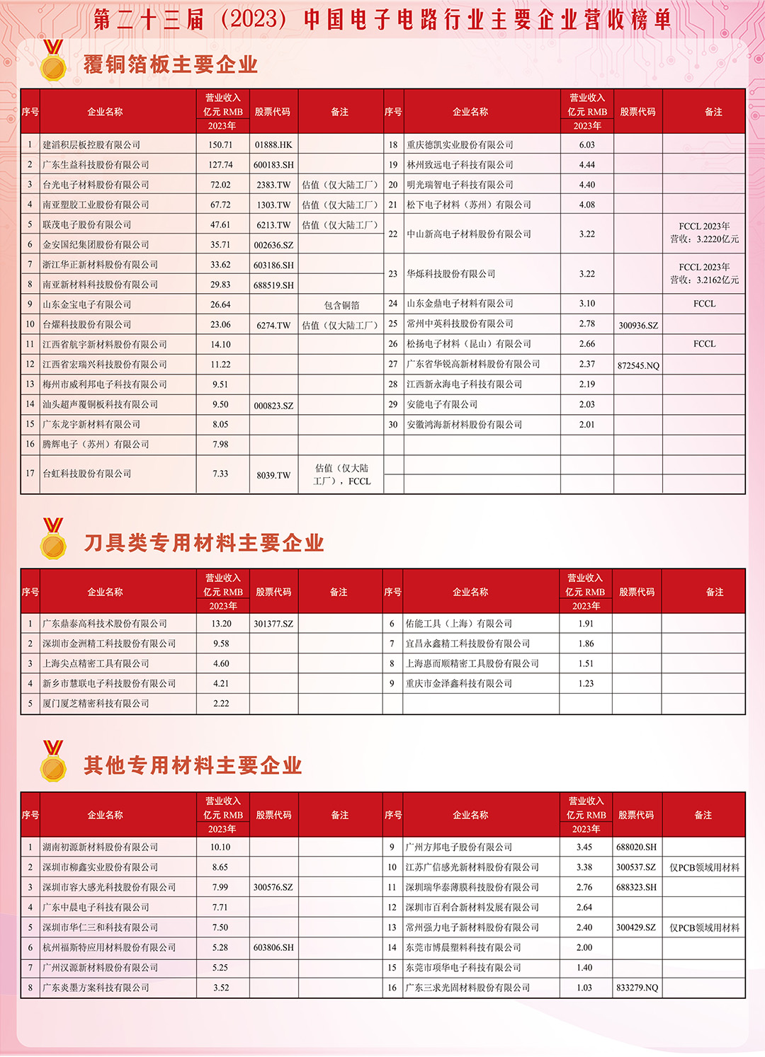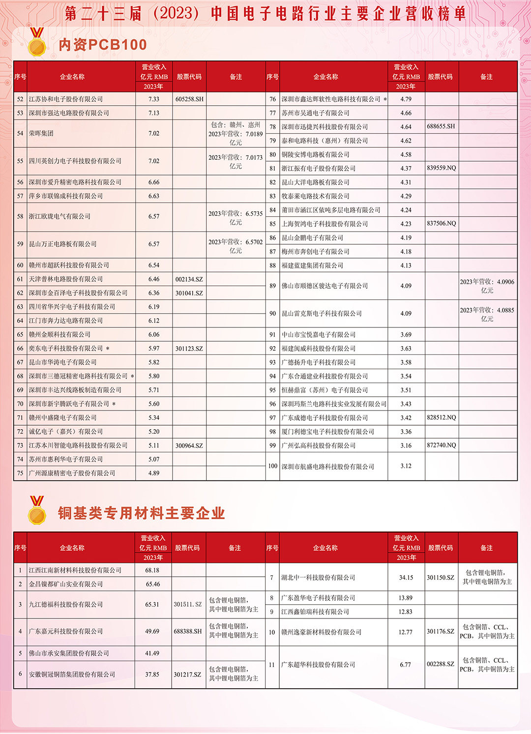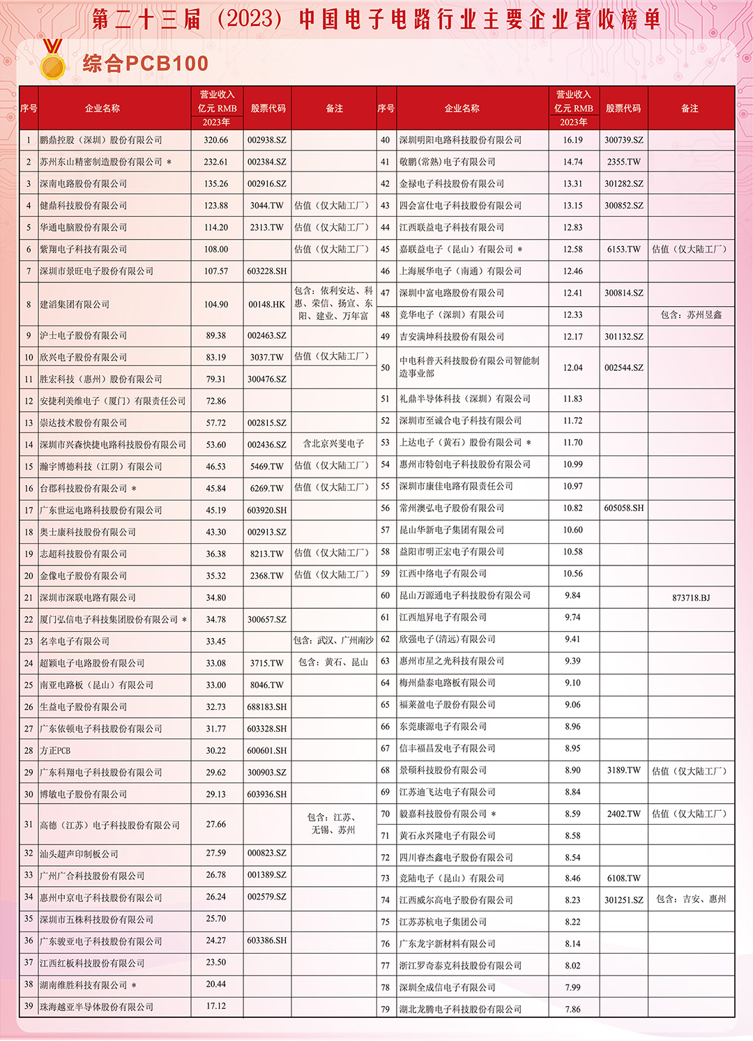 第二十三届(2023)中国电子电路行业主要企业营收榜单