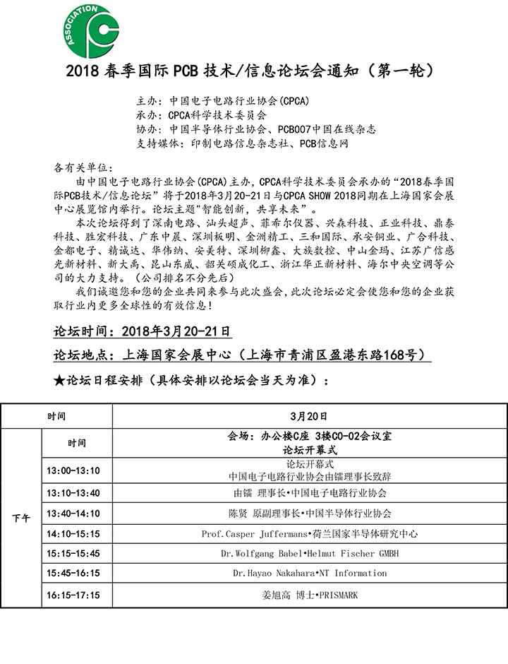2026年春季国际PCB技术信息论坛通知(第三轮)