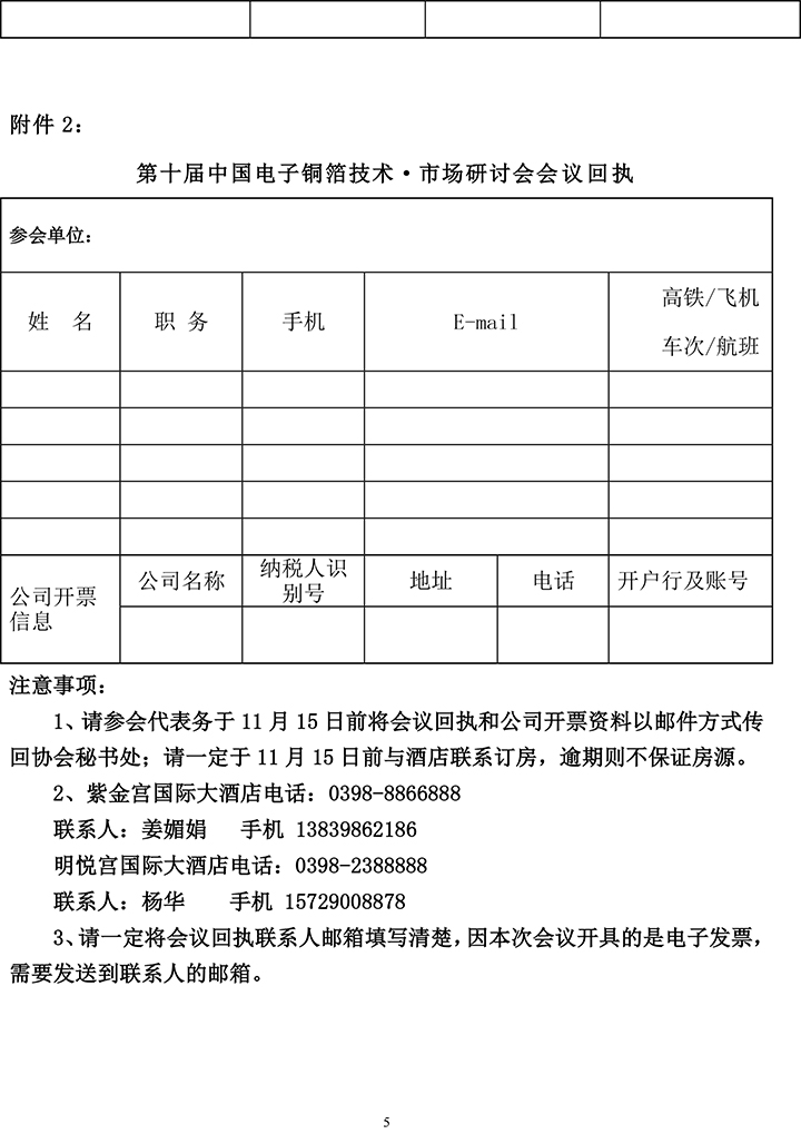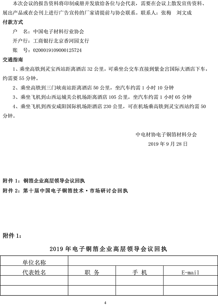 第十届中国电子铜箔技术市场研讨会邀请函([2019] 6号)