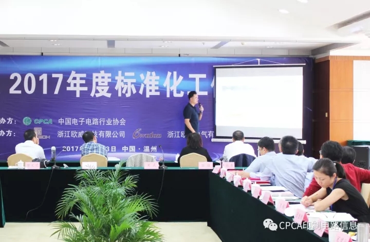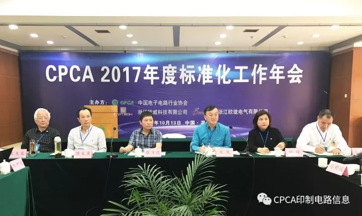 2017年10月13日在温州雁荡山山庄举行了2017年度标准化工作会议。CPCA名誉秘书长王龙基、CPCA秘书长张瑾、CPCA标委会主任朱民、副主任王成勇及马明诚、原CPCA标委会会长陈文录、浙江欧珑电气、欧威科技有限公司董事长张方德、CPCA标委会秘书陈易丽及PCB行业60余位标委会委员出席了会议。