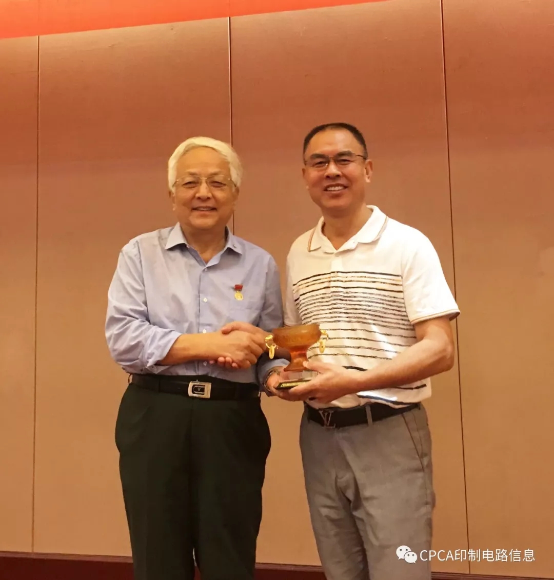 CPCA名誉秘书长王龙基向本次年会的承办方莆田依吨多层电路有限公司赠送礼品。