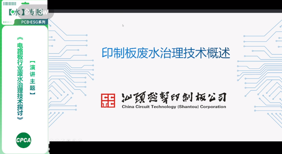 2023年2月22日下午,CPCA开启PCBESG系列——【水】专题,邀请汕头超声印制板公司环保工程师庄焕镇作主题为《电路板行业废水治理技术探讨》的演讲。本次专题演讲采取线上直播形式,由CPCA会员部任晋林主持。演讲嘉宾:汕头超声印制板公司环保工程师 庄焕镇演讲主题:电路板行业废水治理技术探讨庄焕镇,现任汕头超声印制板公司环保工程师,长期从事印制板行业废水、废气、中水、纯水等多个环保项目的规划、设计、建设及运营管理,参与节能、减排等清洁生产审核及ISO14001环境管理体系、社会责任体系认证工作。图片广告与正文无关印制电路板产…