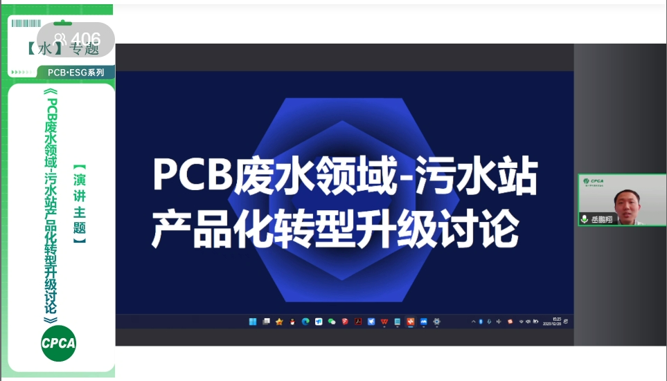 2023年12月28日下午,CPCA开启PCBESG系列——【水】专题演讲,邀请广东新大禹环境科技股份有限公司工艺所长/产品转型组长岳鹏翔作主题为《PCB废水领域-污水站产品化转型升级讨论》的演讲。岳鹏翔,广东新大禹环境科技股份有限公司,工艺所长/产品转型组长。曾参与梅州东升工业PCB园区TOT形式,设计、运营(服务五铢、博敏、志浩、盈华)项目;参与西南PCB制造基地污水处理厂技改扩能项目、BOO项目,服务英创力等PCB园区企业;参与武平县第二污水处理厂委托运营项目(ROT);参与EPC工程(惠州华通电脑、珠海崇达、江苏中信华)等。 岳工在本…
