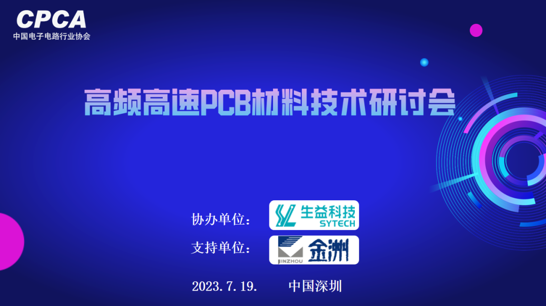 目前我国已建成全球规模最大的5G网络,相关融合应用不断拓展,推动智能汽车、人工智能、数字化发展支撑作用不断增强,驱动高频高速PCB及材料的发展。基于此背景下,2023年7月19日,由中国电子电路行业协会CPCA主办,广东生益科技股份有限公司与深圳市金洲精工科技股份有限公司协办的高频高速PCB材料技术研讨会在广东省深圳市宝安区皇家维纳斯酒店维也纳厅成功召开。图片本次研讨会由CPCA副秘书长冼彤、顾问黄伟主持。此次研讨主题围绕高频高速材料研发、工艺和产品可靠性等专题进行探讨。图片CPCA副秘书长 冼彤图片CPCA顾问 黄伟参加对象为…