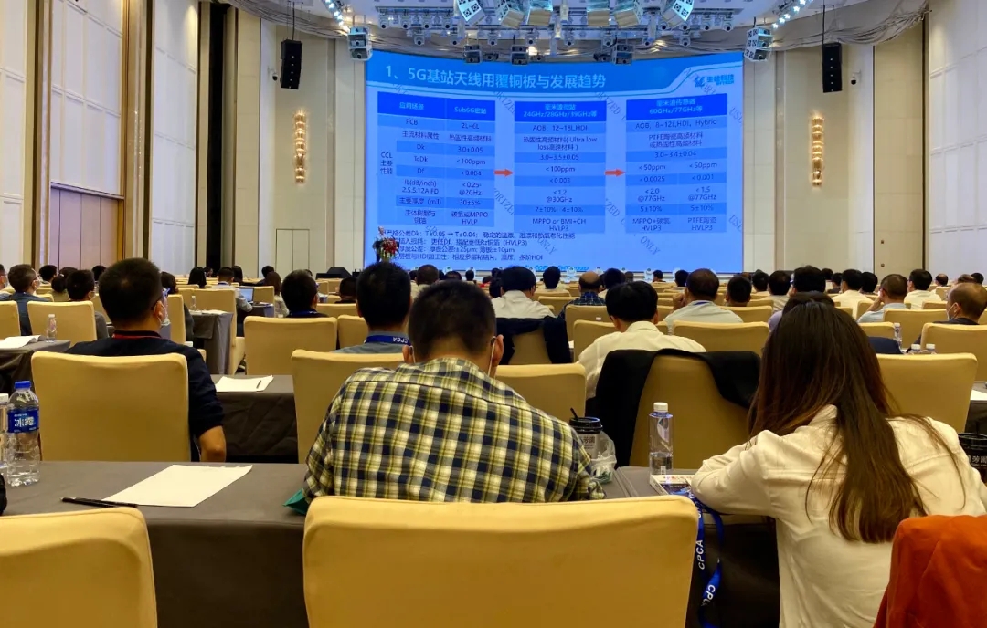 广东生益科技股份有限公司总工程师曾耀德作《5G覆铜板材料与发展趋势》主题演讲。他谈到,随着5G技术的应用,5G通信网络与手机等终端产品对覆铜板材料提出了不同的性能要求,而随着5G向毫米波方向发展及高传输速率、低时延、大数据发展需求,5G通信网络与终端对覆铜板材料提出了更高的挑战,报告从5G各应用场景例如基站、核心网、手机终端等产品对覆铜板材料主要性能要求与发展趋势作分类介绍。