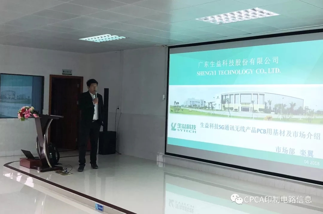 培训期间生益科技集团高频市场开发项目经理栾翼,就生益科技5G产品布局及应用做了介绍。会后全体参会人员还一起参观了生益科技。