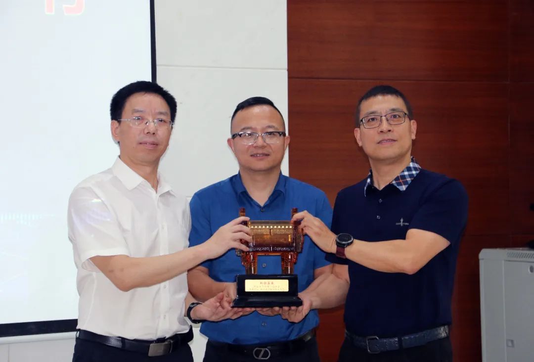 ▲ CPCA副理事长张恭敬(左)代表协会向思沃集团赠送礼品,并感谢王建勋董事长(右)对本次会议的大力支持。