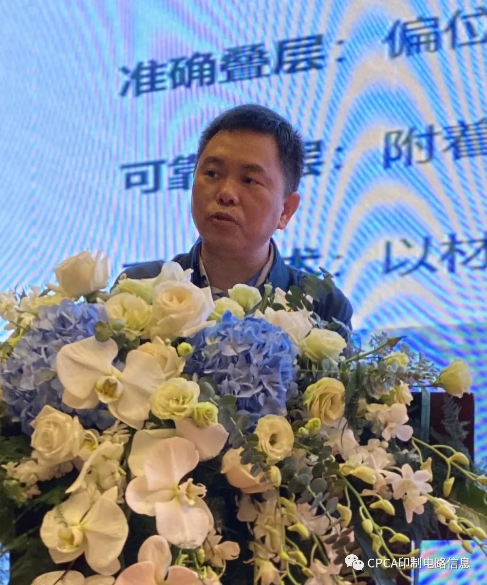 深圳市百柔新材料胡军辉博士作了题为《加法制造PCB的材料解决方案路径探索》精彩演讲。他谈到加法制造的工艺革命是 PCB行业走向绿色制造和智能制造的必由之路,介绍了很多新型材料、精密印刷工艺技术等。