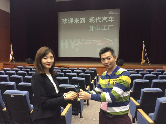 午餐过后,CPCA考察团前往韩国牙山参观现代汽车厂。现代汽车公司安排了中文讲解员为我们CPCA考察团介绍了现代汽车牙山厂,之后由CPCA常务理事—深圳市欣汉生科技有限公司王海二总经理作为CPCA考察团代表向现代汽车公司赠送了礼品。