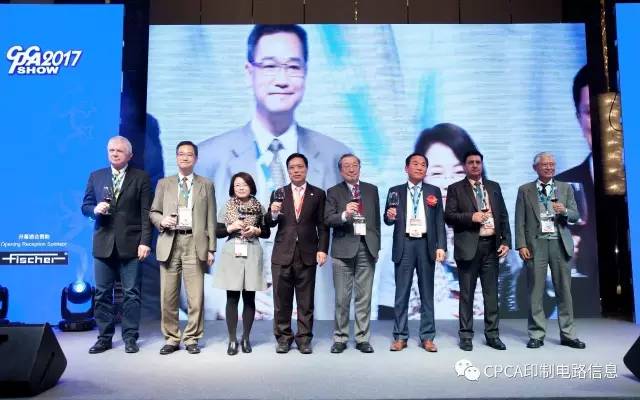 CPCA由镭理事长为2016年度特珠贡献企业奖获得者:生益科技、菲希尔、正业科技、深圳硕成、浙江振有科技、新野鼎泰颁奖。