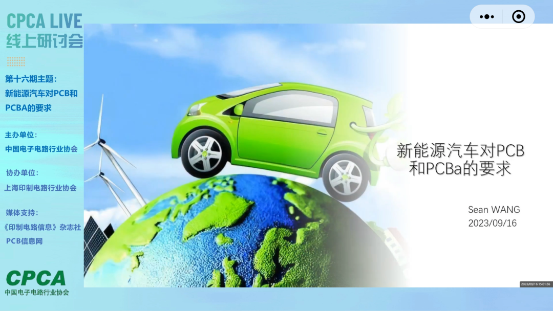 CPCA Live第十六期“新能源汽车对PCB和PCBA的要求”线上研讨会