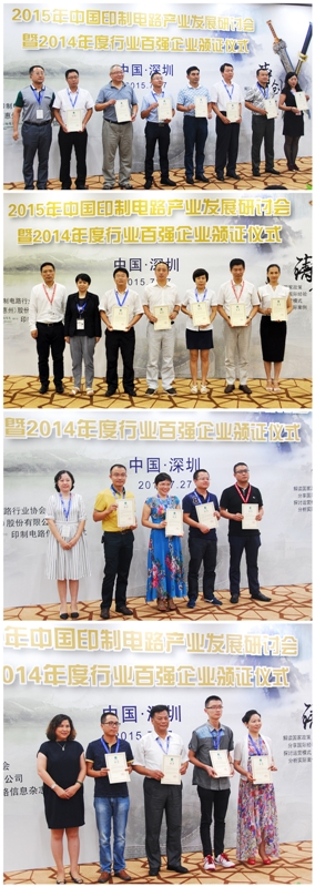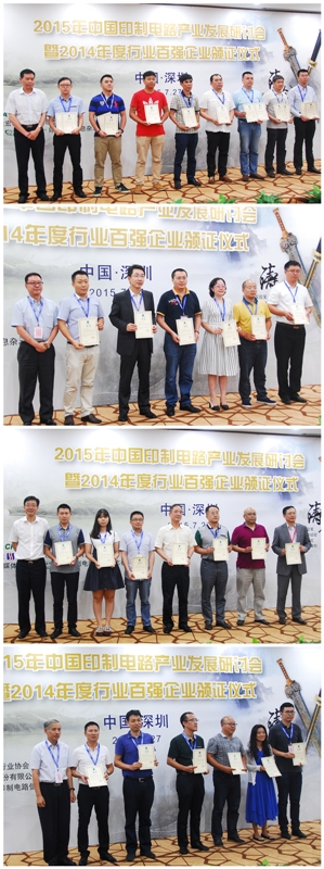 2015年中国印制电路产业发展研讨会暨2014年度行业百强企业颁证仪式在深圳隆重举行