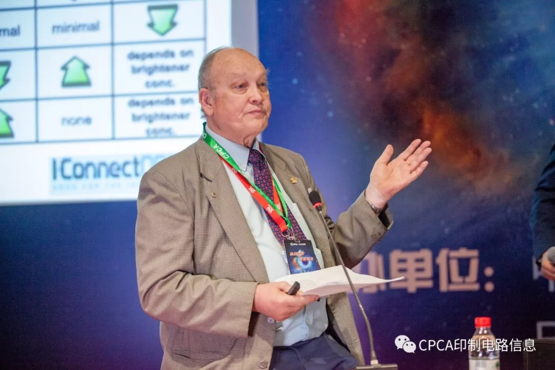 首先请有着“HDI 之父”之称的Happy Holden,他曾任GENTEX公司电子和创新总监,曾任世界最大PCB制造商鸿海精密工业(富士康)MIP 业务集团(生产机械组件、电子电路等配件)的首席技术官。他将演讲内容分上下午三场进行,详细介绍如何对车间规划实现更完整的HDI自动化。HDI的加工工艺控制对于高良率来说非常重要,其中化学浓度控制对于自动化加工来说必不可少。Happy在“仪器分析化学”方面有深入的研究,在惠普富士康研发并使用了一种新技术,关键是此技术只需要非常低的成本就能实现。