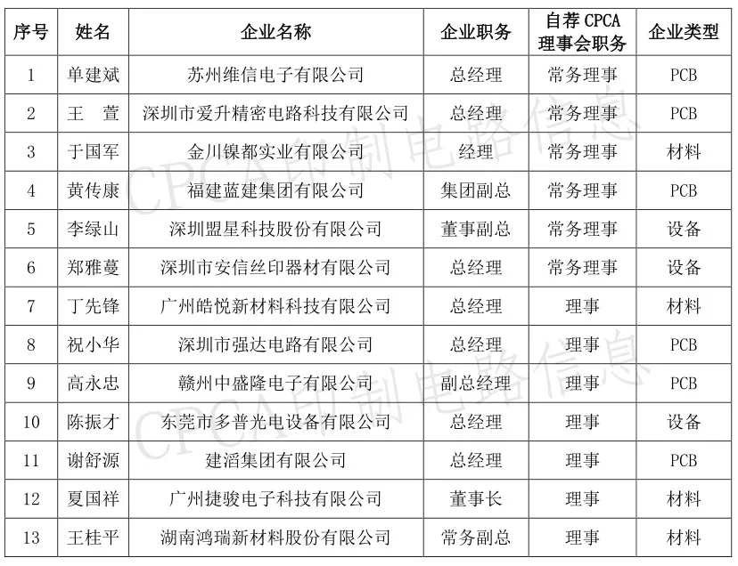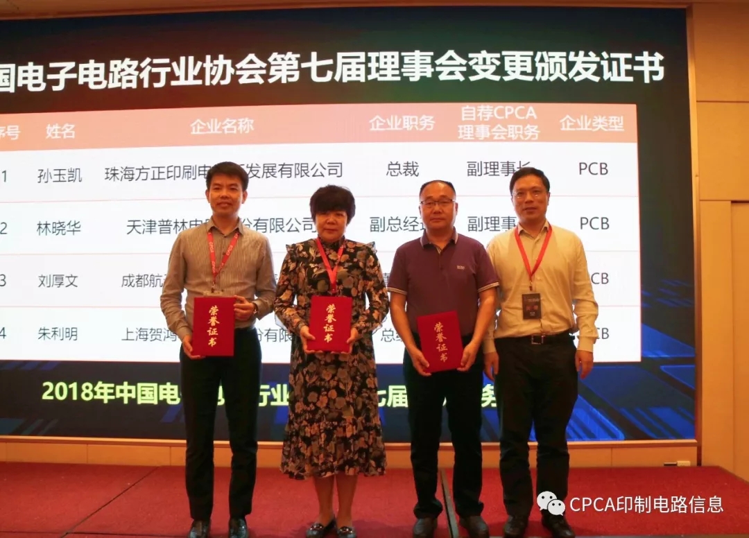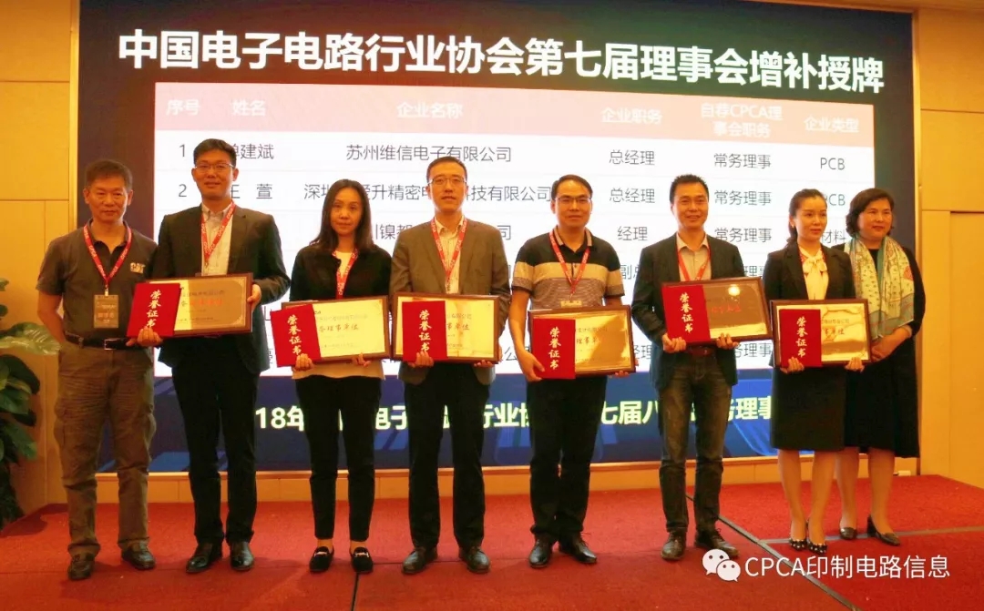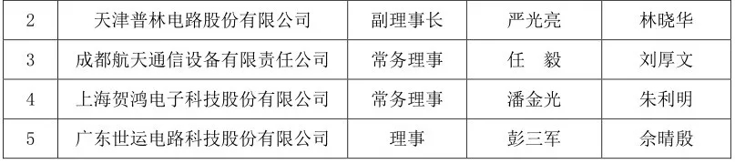 变更及增补后,中国电子电路行业协会第七届理事会共有192名成员,其中:理事长 1 名,常务副理事长 1 名,副理事长 32名,常务理事 77 名,理事 81 名。