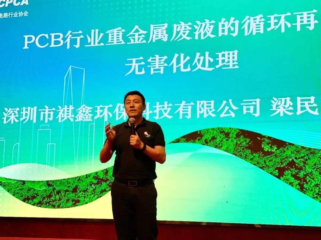 梁民总经理作《PCB行业重金属废液的循环再生及无害化处理》报告。梁总介绍到,祺鑫环保设备的最大特点——安全。公司在发展战略上将“安全”作为第一要素,公司通过各项安全管控项目,最大程度保护、监管生产及处理过程中的各项工作的安全措施,得到客户认可及感谢。祺鑫环保希望今后通过循环再生为客户创造最大价值,并成为PCB行业危废整套解决方案专家。