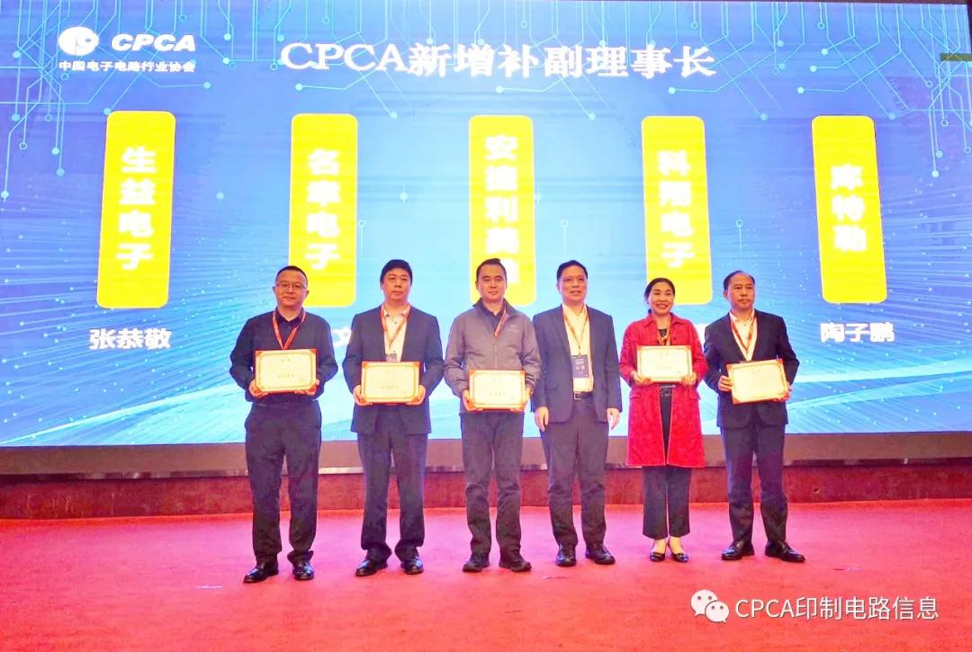 以上汇报获得常务理事会、监事会举手通过。随后,对CPCA新增补副理事长、常务理事以及今年7月增补的副理事长生益电子张恭敬、名幸电子邱均文授牌。