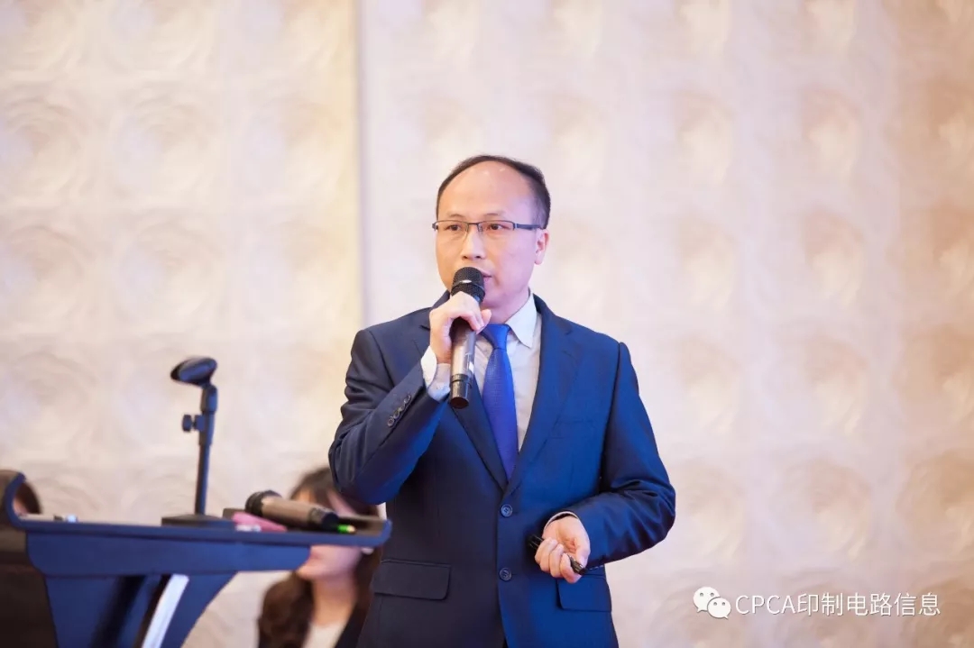在晚上的招待晚宴上,由镭理事长祝贺大会顺利举行,并祝2019国际电子电路(上海)展览会圆满成功。