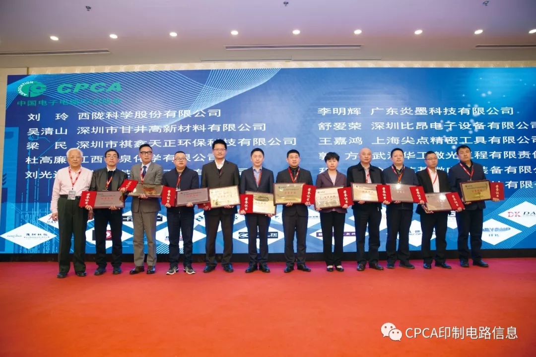 CPCA莫少山名誉理事长、王龙基名誉秘书长为新增补理事广东炎墨科技有限公司李明辉、深圳比昂电子设备有限公司舒爱荣、上海尖点精密工具有限公司王嘉鸿、武汉华工激光工程有限责任公司郭方、合肥芯碁微电子装备有限公司程卓、江苏智微新材料科技有限公司陆明森、西陇科学股份有限公司刘玲、深圳市甘井高新材料有限公司吴清山、深圳市祺鑫天正环保科技有限公司梁民、江西博泉化学有限公司杜高廉、厦门厦芝科技工具有限公司刘光达颁发证书。