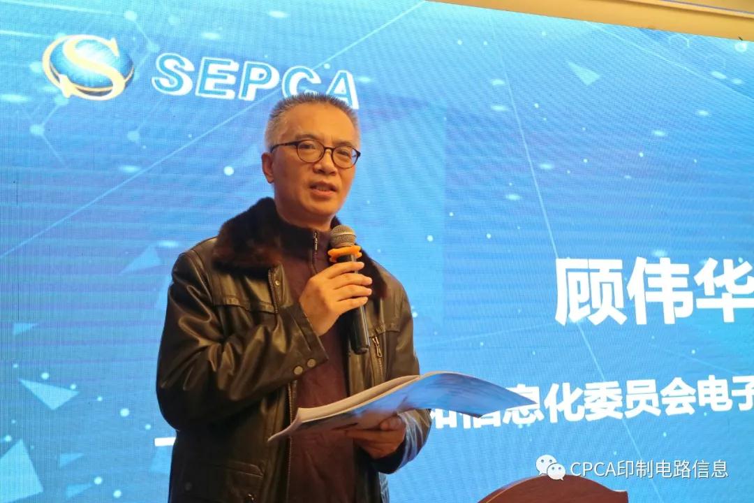 会议首先由上海经济和信息化委员会电子信息处副处长顾伟华先生致辞。他表示:首先非常感谢上海印制电路行业协会邀请来到这次大会;其次读了这次大会资料,看到大会内容饱满,包含解读、分析、还有信息分享,内容扎实实在。他曾到访过上海印制电路行业协会秘书处两次,看到工作人员都年轻有朝气,很好地传承了老一辈领导的精神,低调又干实事,相信未来协会工作一定会做得更好。