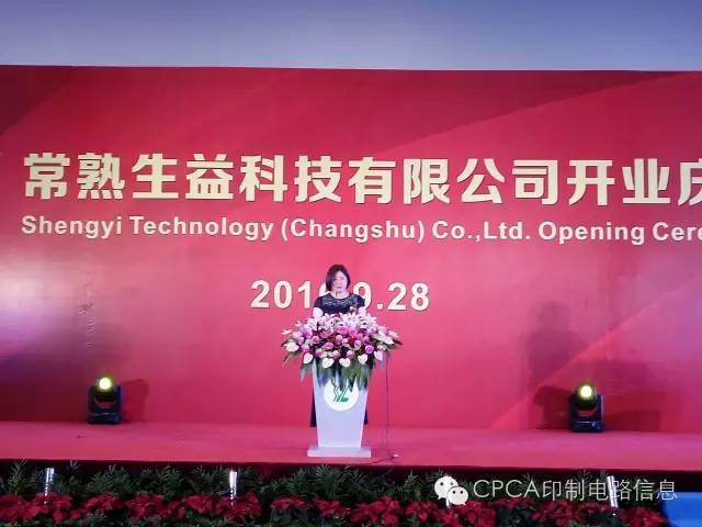 瑞雨兆金秋,2016年9月28日在常熟生益科技有限公司在常熟市高新区香园路19号举行开业典礼,CPCA协会洪芳副秘书长代表中国印制电路行业协会向生益科技表达了开工之喜!