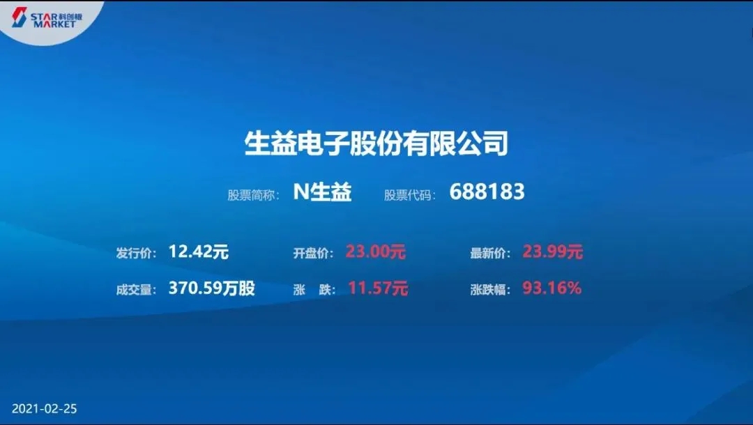 牛年伊始,万象更新,2021年2月25日上午9:30分,生益电子股份有限公司在上海证券交易所科创板正式挂牌上市,成为国内A股上市公司分拆所属子公司在A股上市的第一家公司。