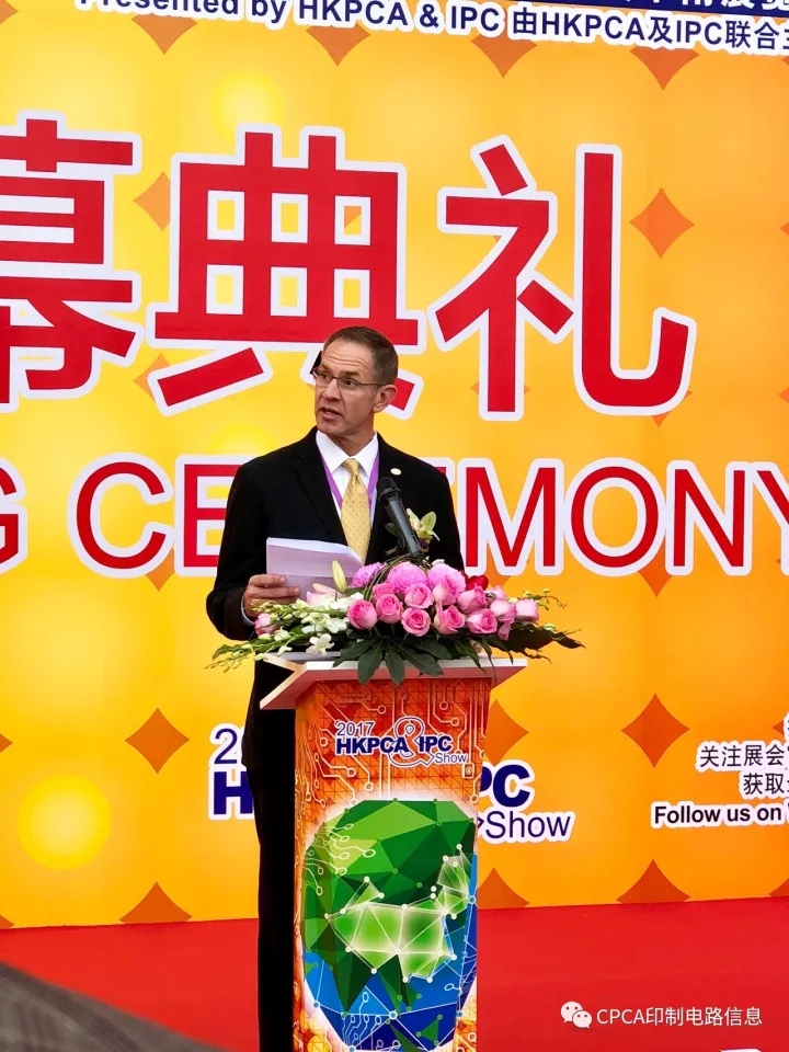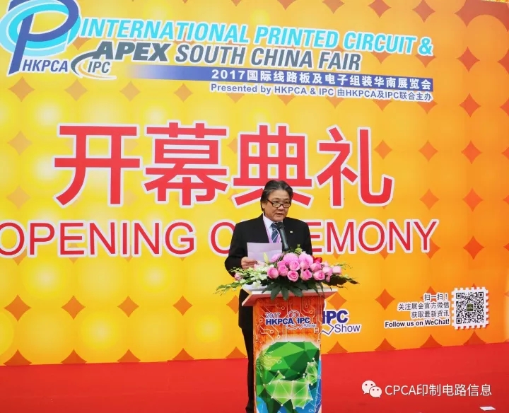 展会主办单位——香港线路板协会会长钟泰强先生、IPC 国际电子工业链接协会总裁和CEO John W.Mitchell博士致开幕辞。