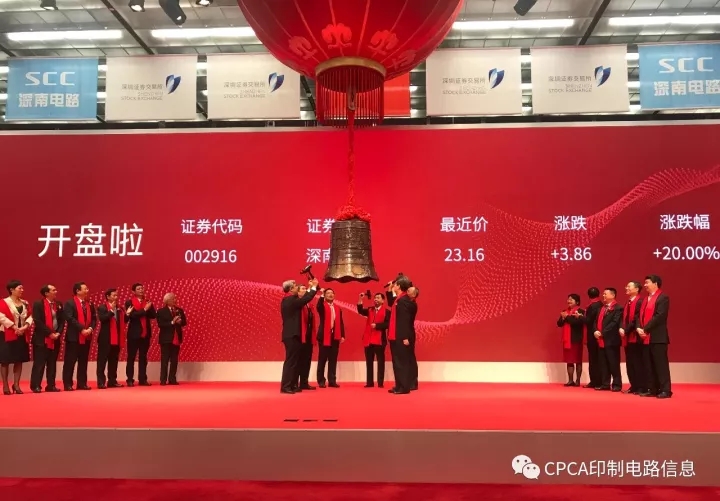 2017年12月13日9:25分,随着深圳证券交易所开市宝钟的敲响,CPCA理事长单位——深南电路股份有限公司首次公开发行A股正式上市,证券简称“深南电路”、证券代码为002916。