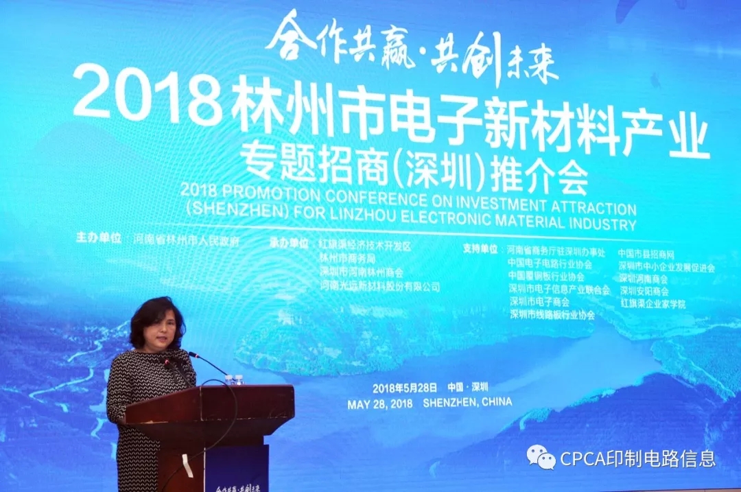 今天,参加林州市国家级红旗渠经济开发区在深圳召开的电子新材料专题招商推介会,首先我代表中国电子电路行业协会(CPCA)对大会表示祝贺,希望通过推介会让广大电子电路行业的企业家朋友们更了解林州。