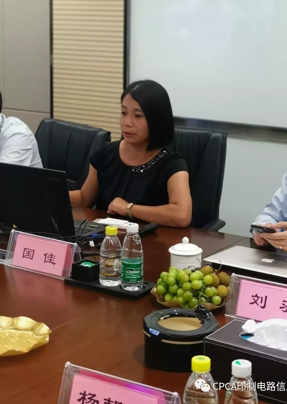 从崇达公司离开后来到深圳市景旺电子股份有限公司。景旺电子集团副总裁、PCB事业群总裁刘羽、景旺电子集团采购总监刘海燕、总裁办副主任国佳等高管负责人们接待了CPCA专用设备分会一行到访交流。