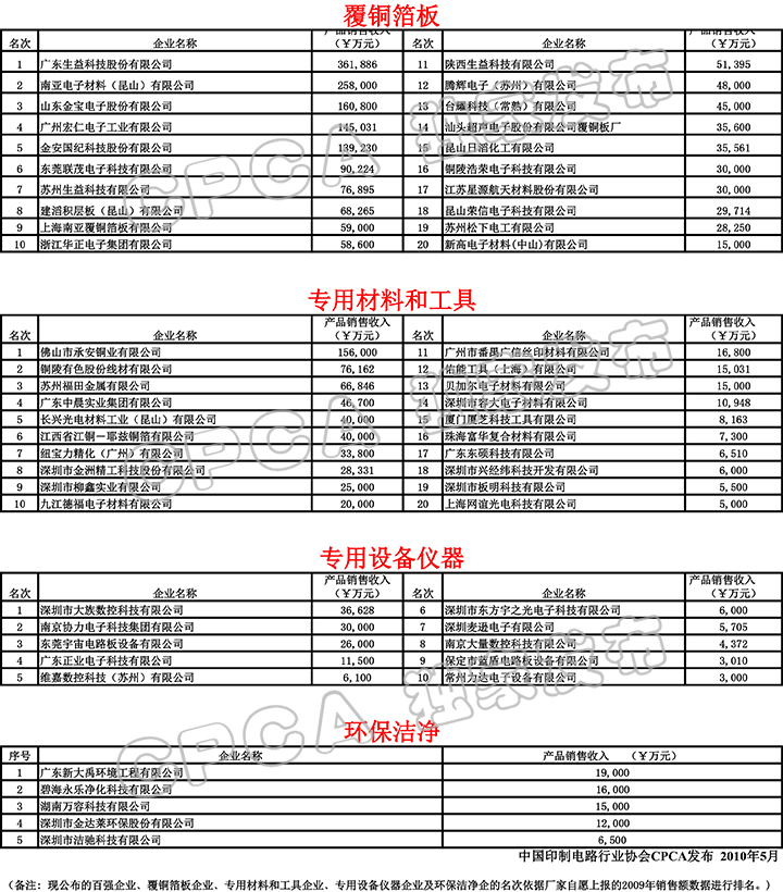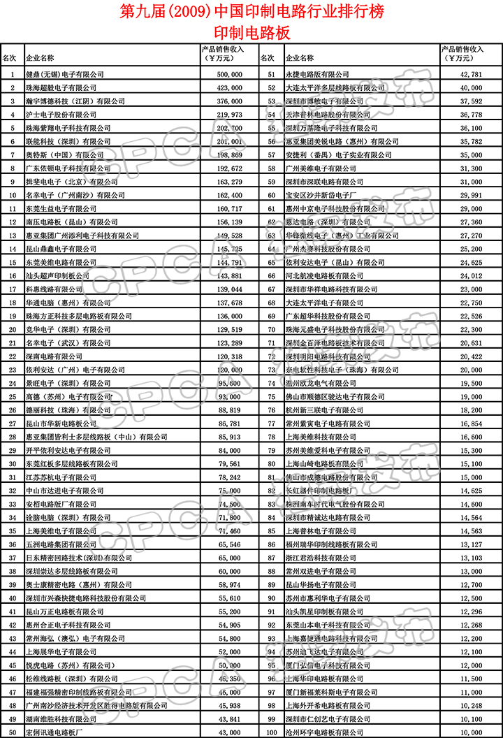 第九届(2009)中国印制电路行业排行榜