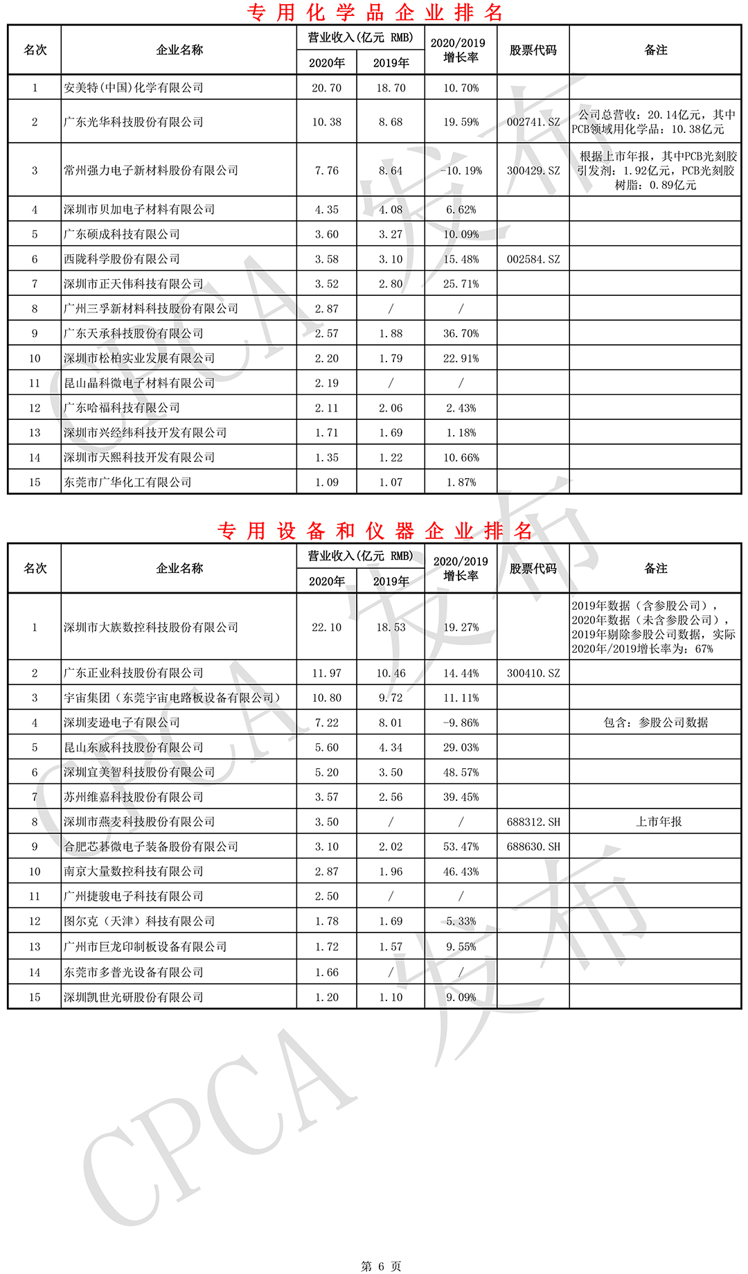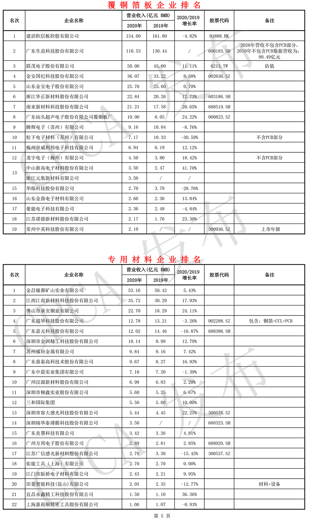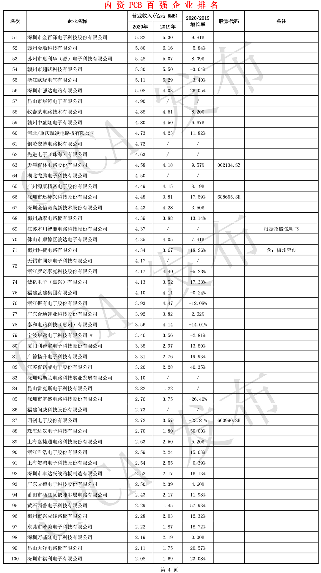 第二十届(2020)中国电子电路行业排行榜
