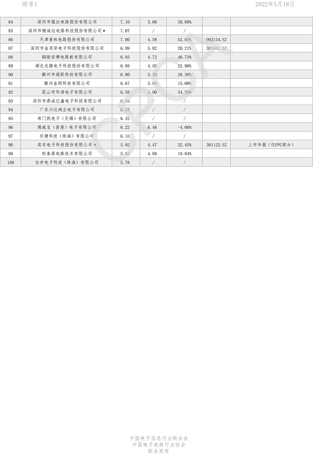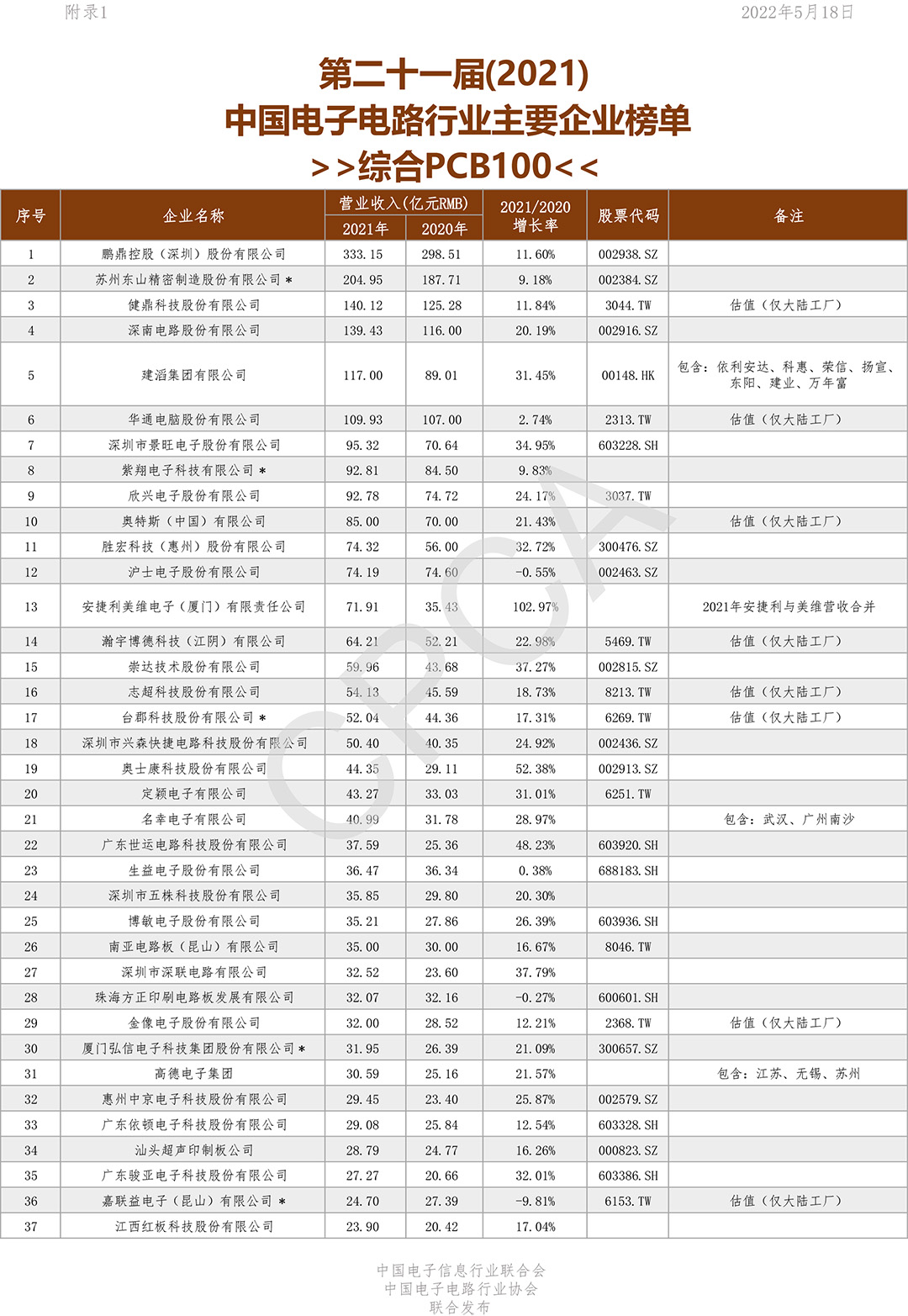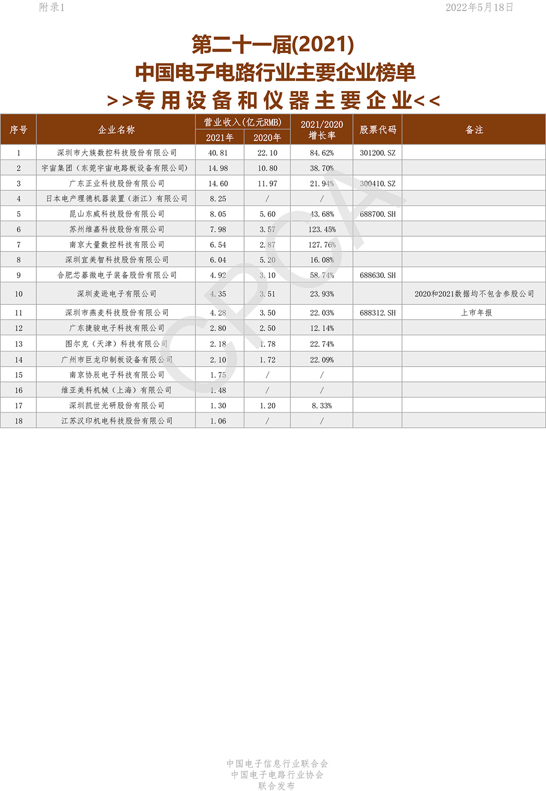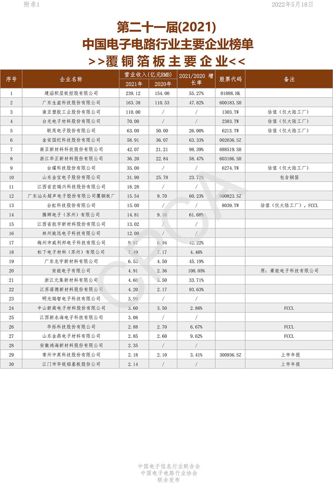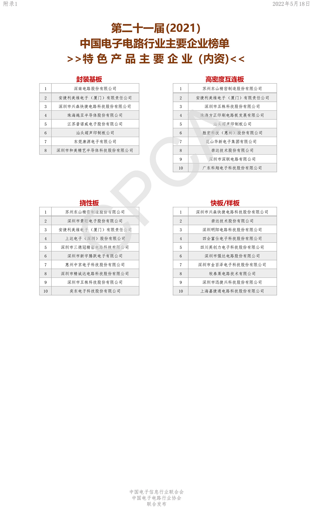 第二十一届(2021)中国电子电路行业主要企业榜单