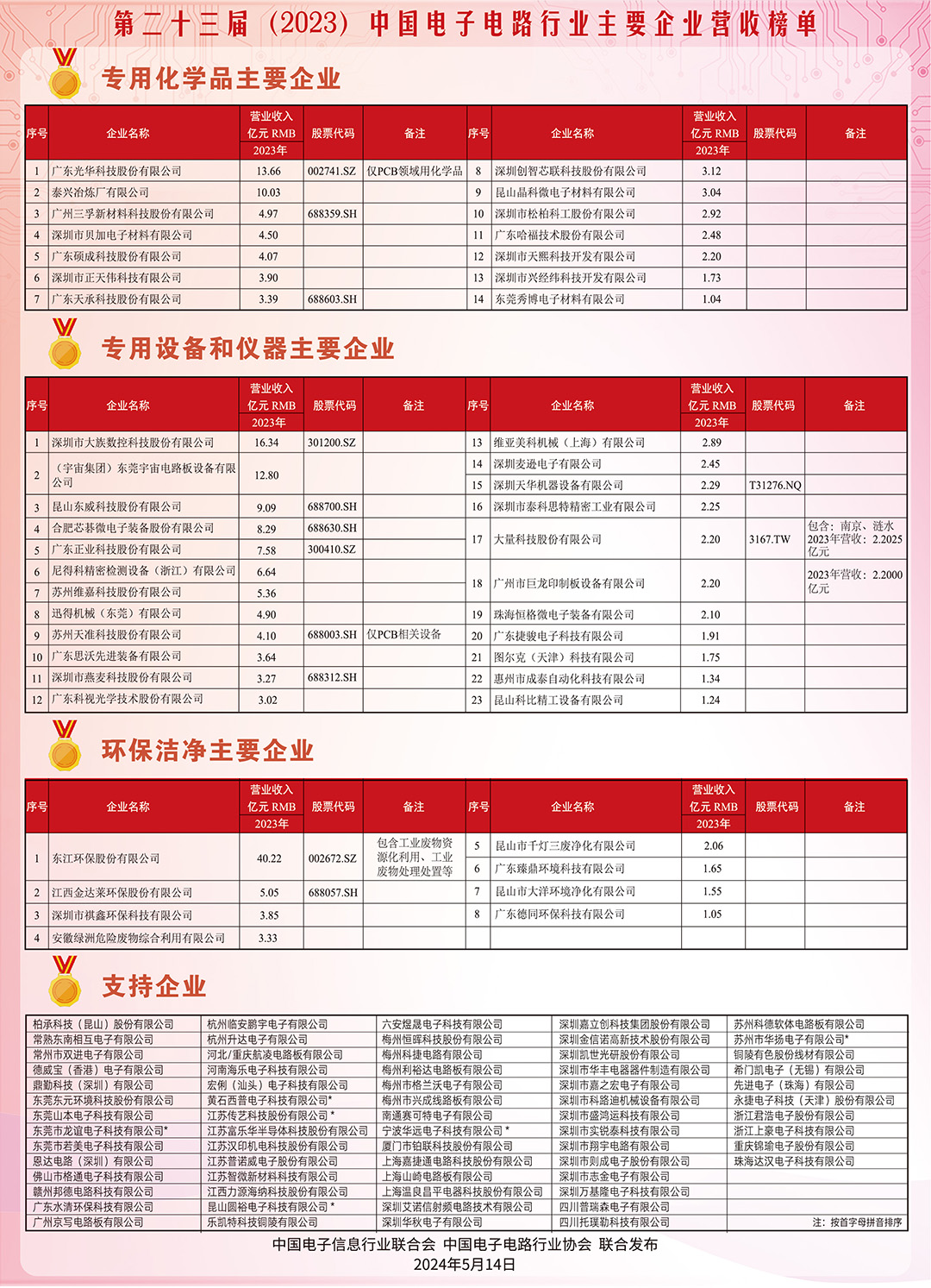 第二十三届(2023)中国电子电路行业主要企业营收榜单