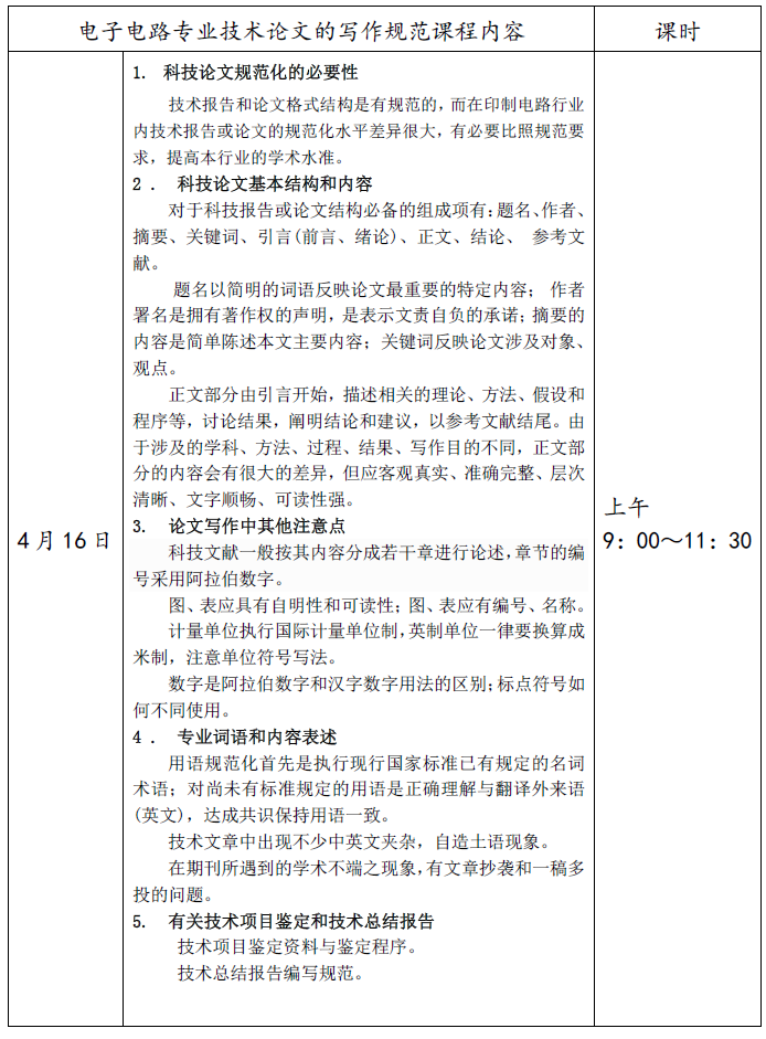 随着整个印制电路技术水平的提高和行业专业技术职称评审的需要,印制电路科技论文写作越来越受到印制电路板企业技术人员的关注。应广大印制电路行业企业要求,为应对当前的疫情等诸多原因,我们采用网络直播的方式开展培训活动,由中国电子电路行业协会(CPCA),于2021年4月16日(星期五)在线举办“电子电路专业技术论文的写作规范”专题直播讲座。有关事项通知如下: