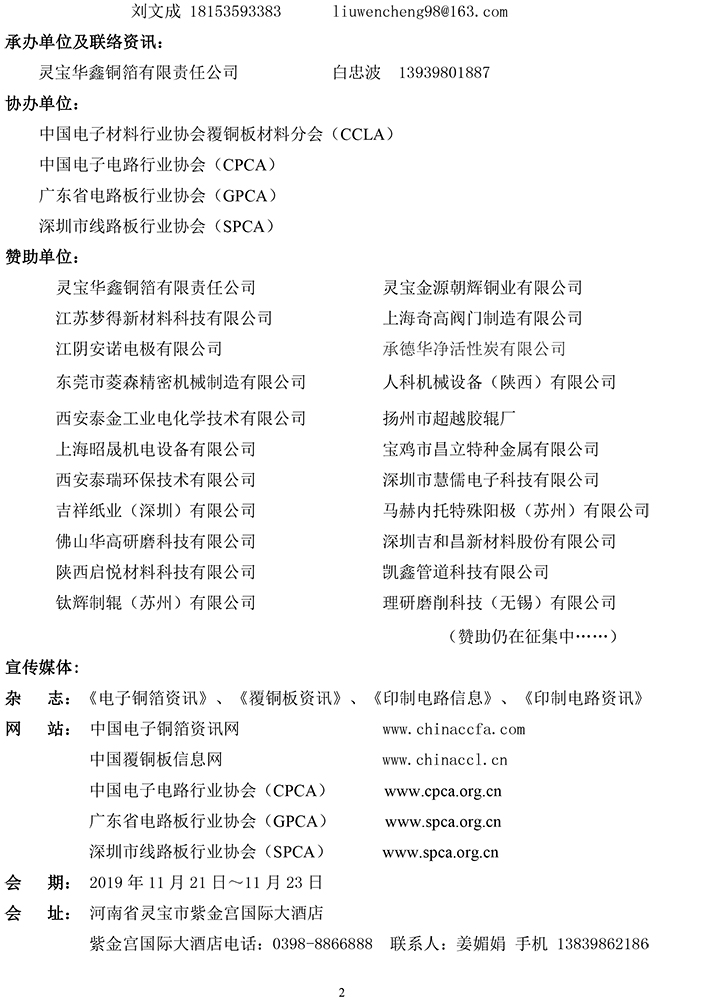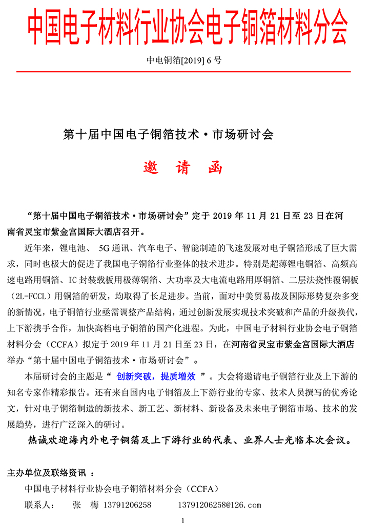 第十届中国电子铜箔技术市场研讨会邀请函([2019] 6号)