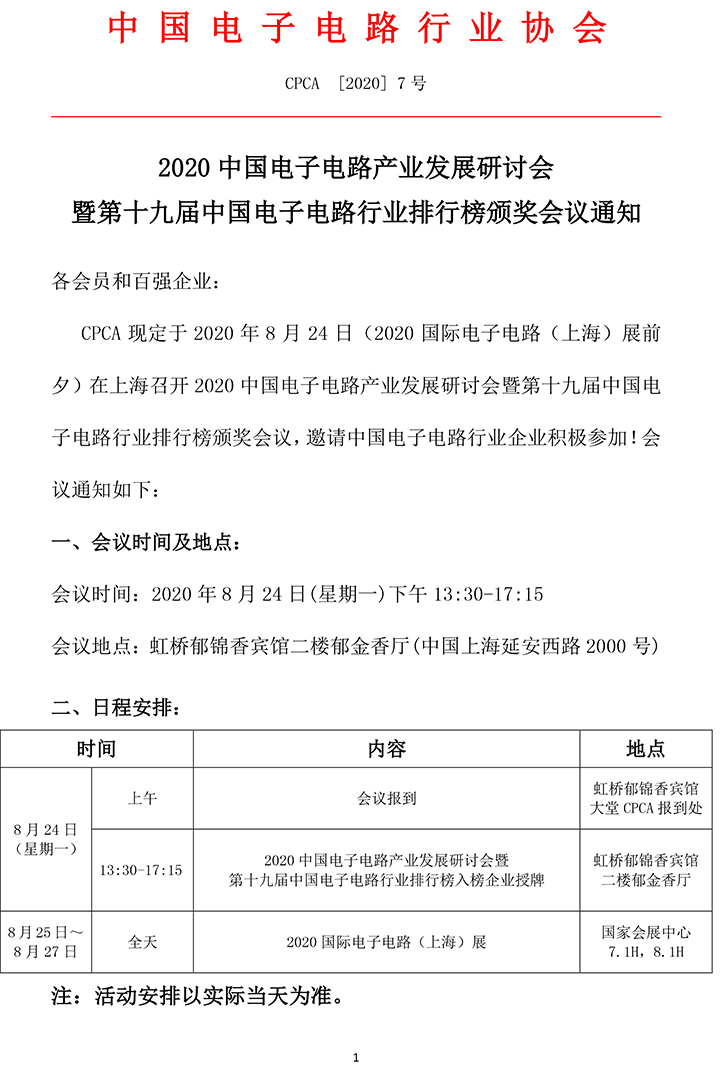 中国电子电路行业协会第九届会员代表大会通知(第一轮)