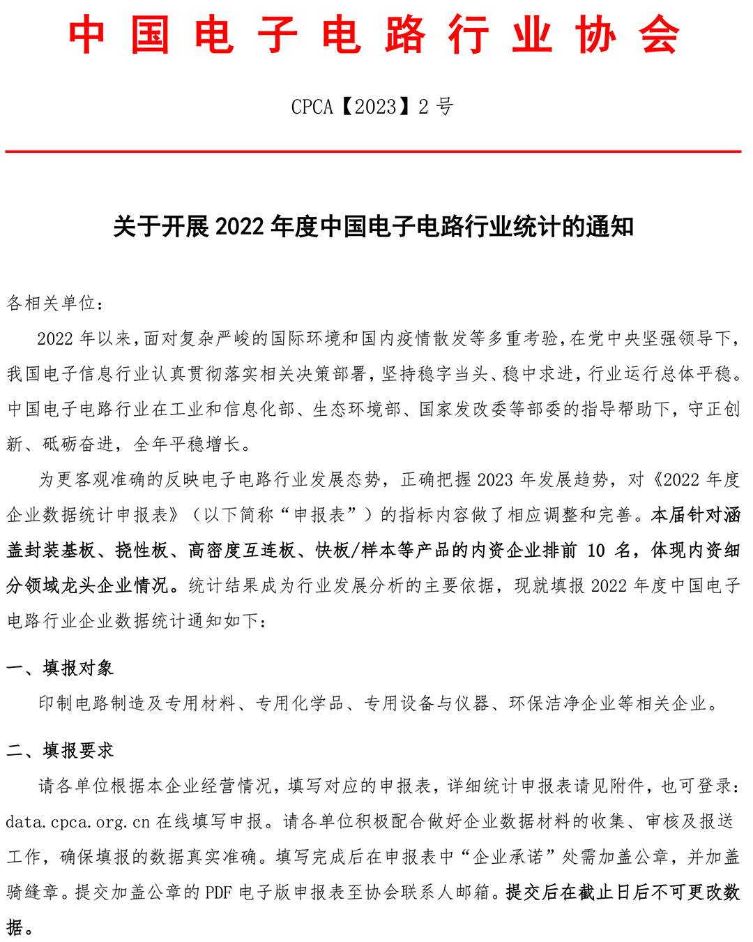 关于开展2022年中国电子电路行业统计通知