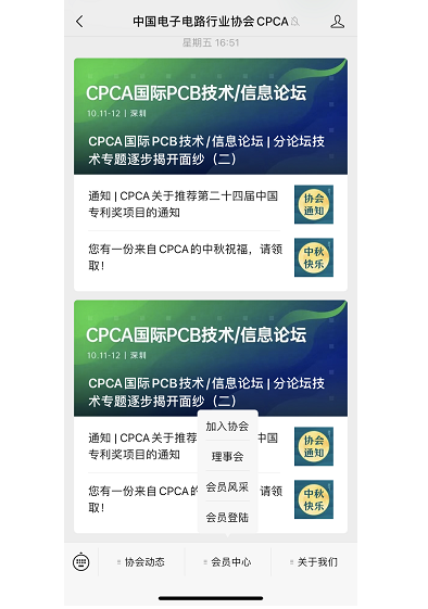 1、关注“中国电子电路行业协会CPCA”微信服务号
