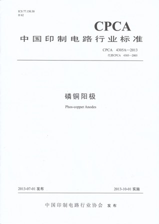CPCA 4305A-2013《磷铜阳极》代替CPCA 4305-2005《磷铜阳极》发布公告