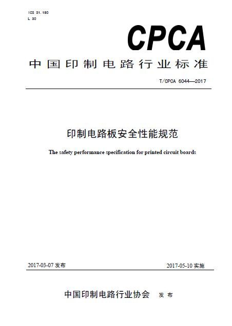 T/CPCA 6044-2017《印制板安全性能规范》发布通告